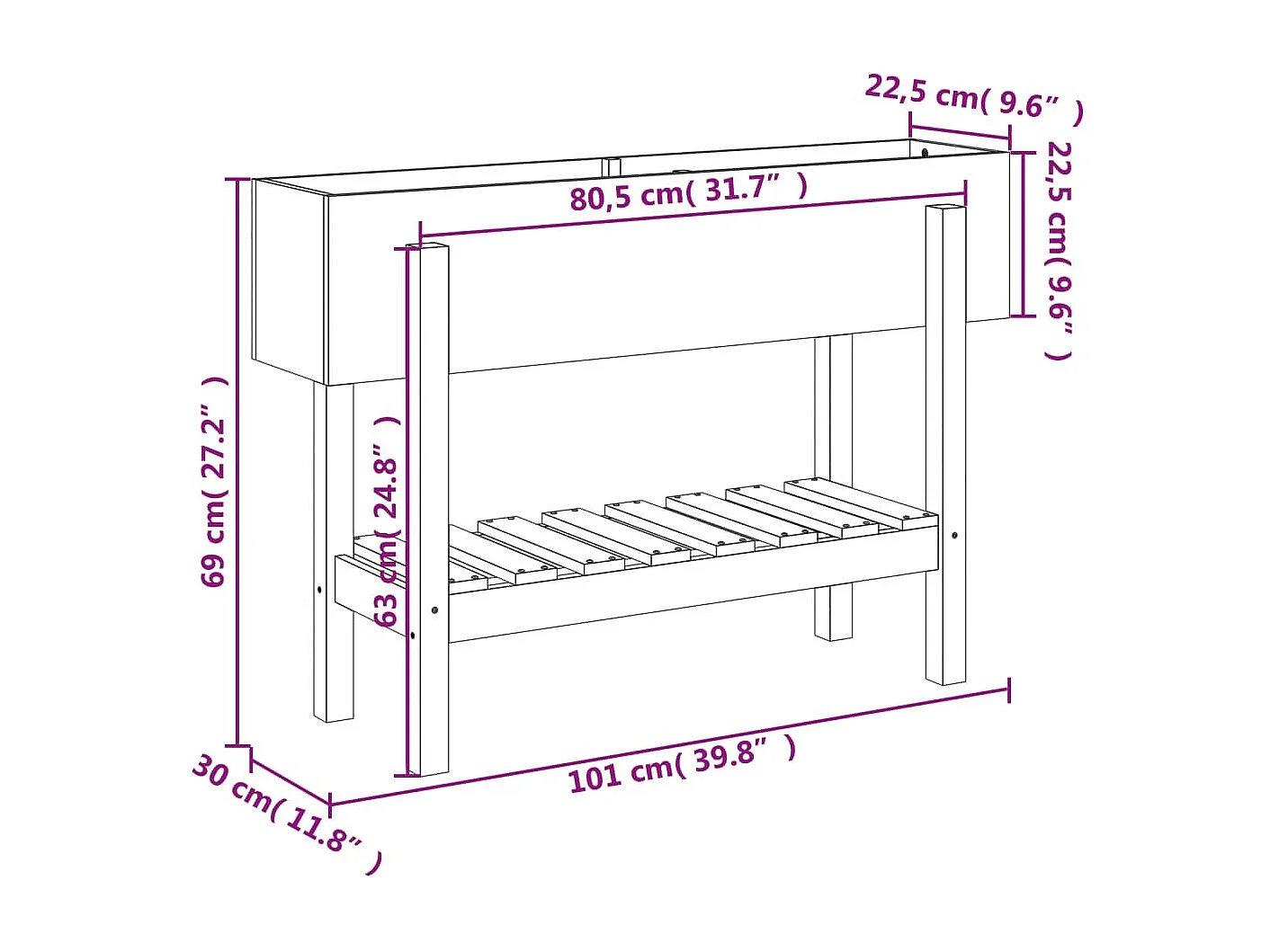 Letto da giardino rialzato 101x30x69 cm in legno massello di abete Douglas