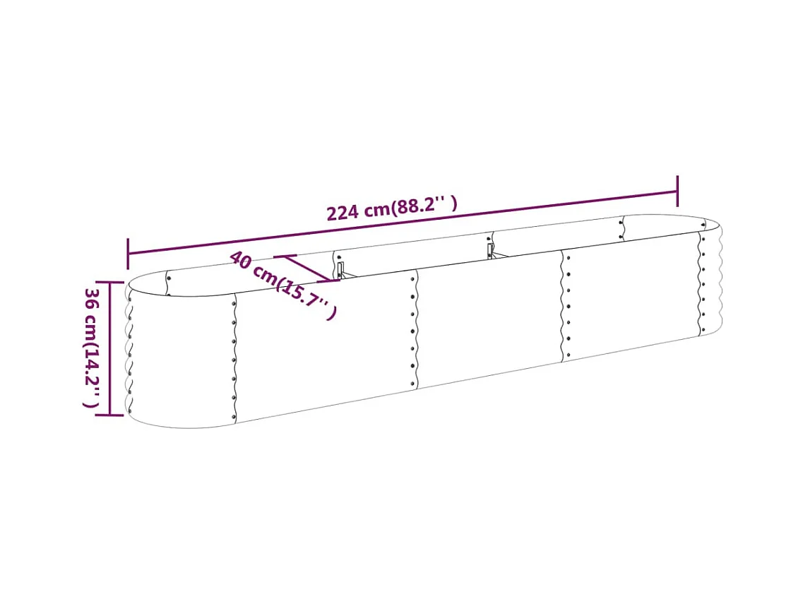 Letto da giardino rialzato in acciaio verniciato a polvere 260x40x36 cm grigio