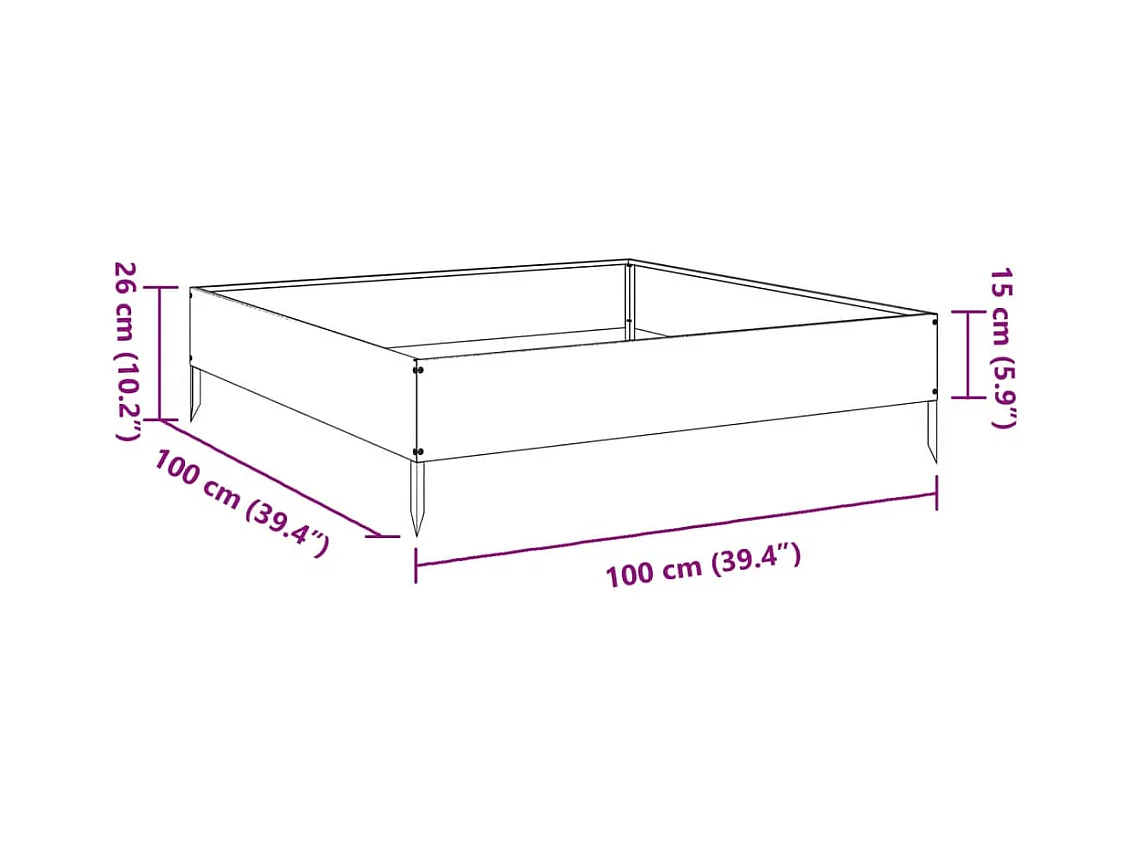 Letto da giardino rialzato nero 100x100x26 cm in acciaio