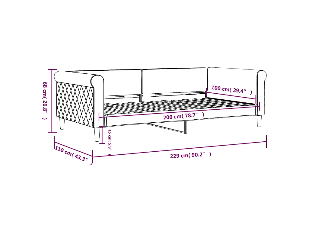 Letto da Giorno Rosa 100x200 cm in Velluto