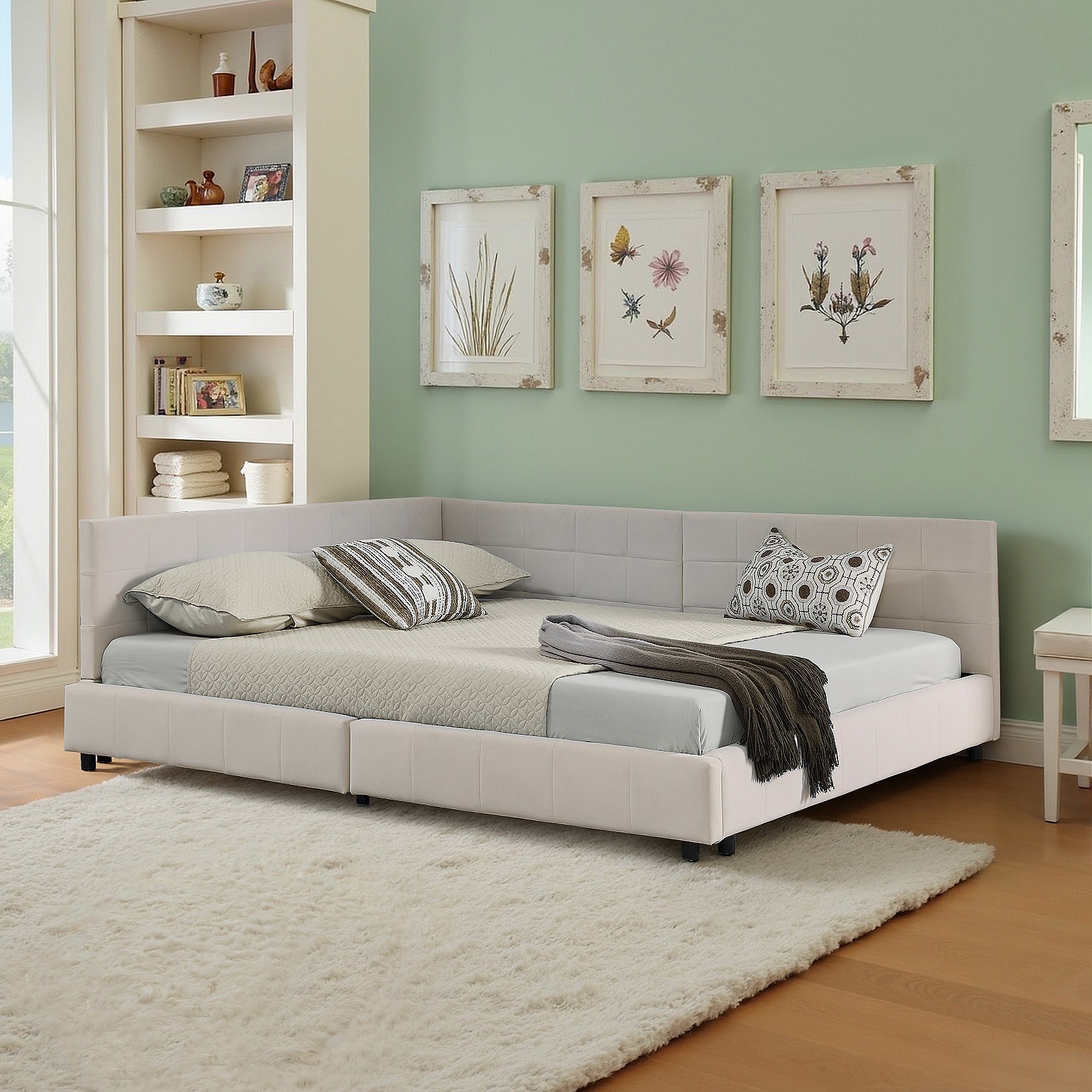 Letto estraibile imbottito 140x200cm, divano letto, rete a doghe, letto per adulti, velluto, beige