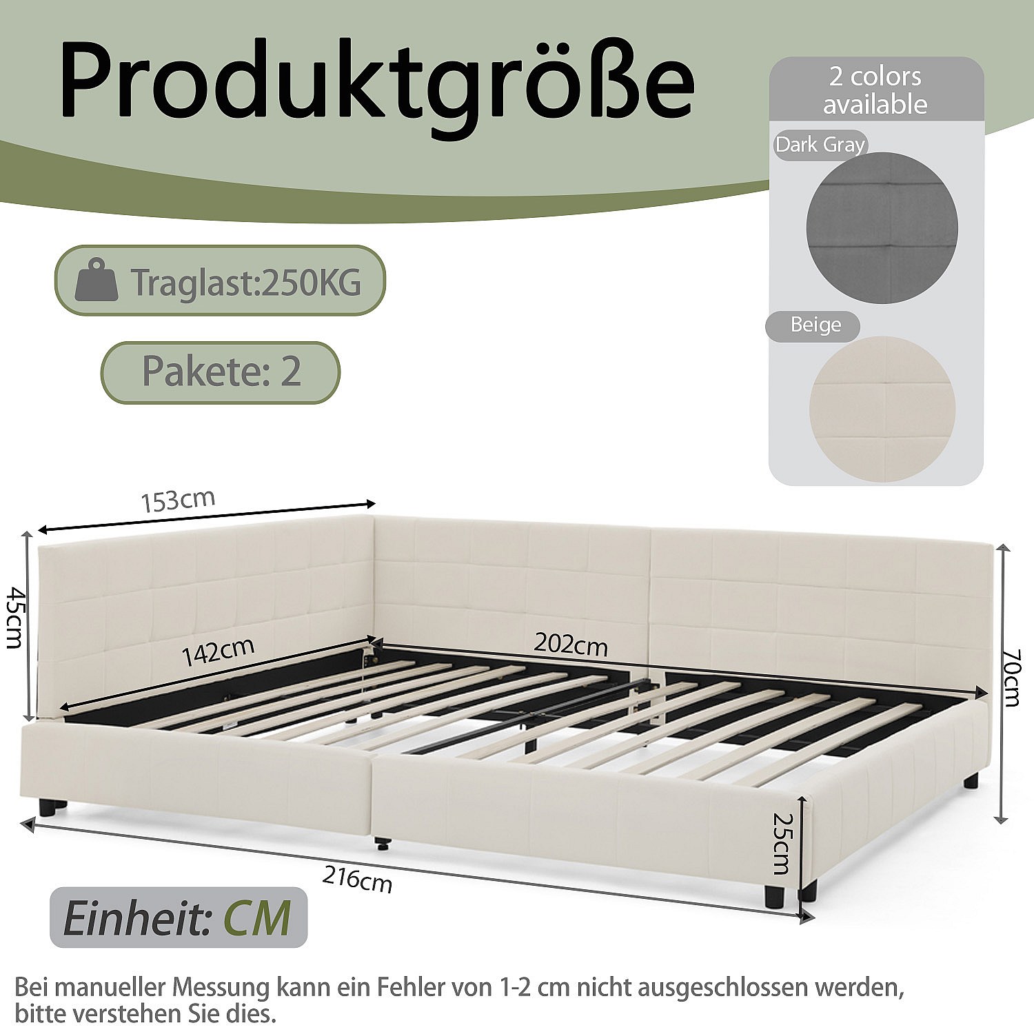 Letto divano 140x200 cm, letto matrimoniale con schienale e rete a doghe, velluto beige - senza materasso