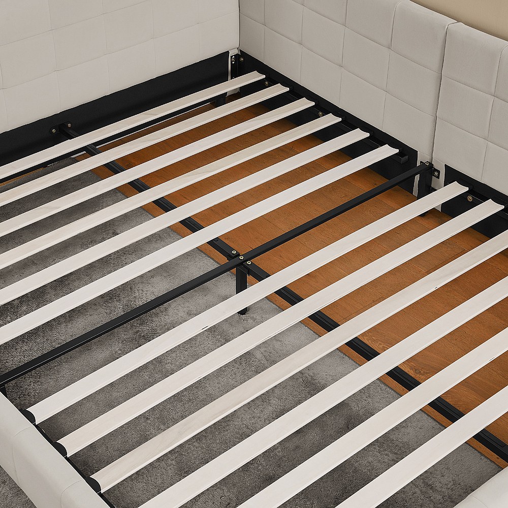 Divano letto140x200 cm con 2 cassetti contenitori e rete a doghe, bianco e legno - senza materasso