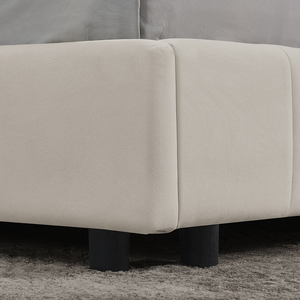 Letto per adulti 140x200cm in velluto con rete e doghe - Beige