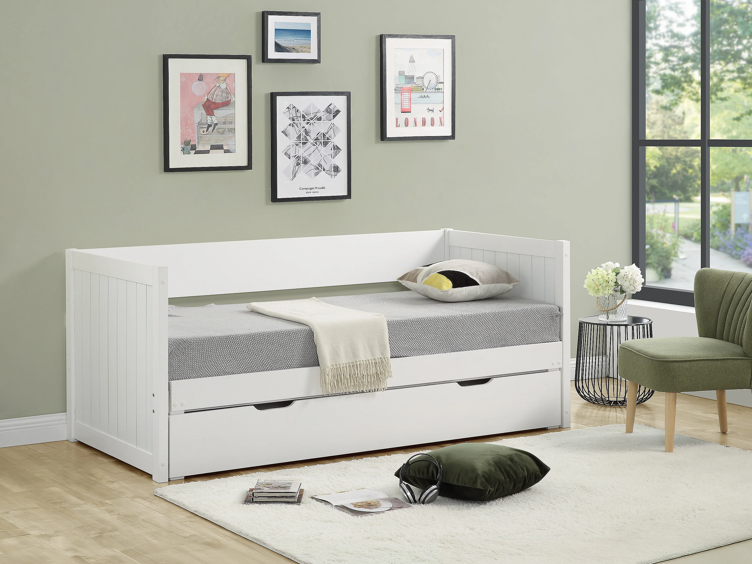 Letto a scomparsa con cassetto - 90 x 190 o 174 x 190 cm - Pino e MDF - con rete a pettine e cassetto - Bianco ALFIERO II