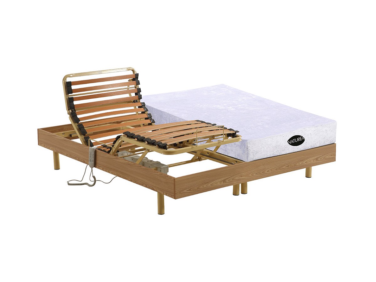 Letto elettrico relax materasso memory foam e bambù con motori OKIN 2 x 80 x 200 cm - THEBES di NATUREA