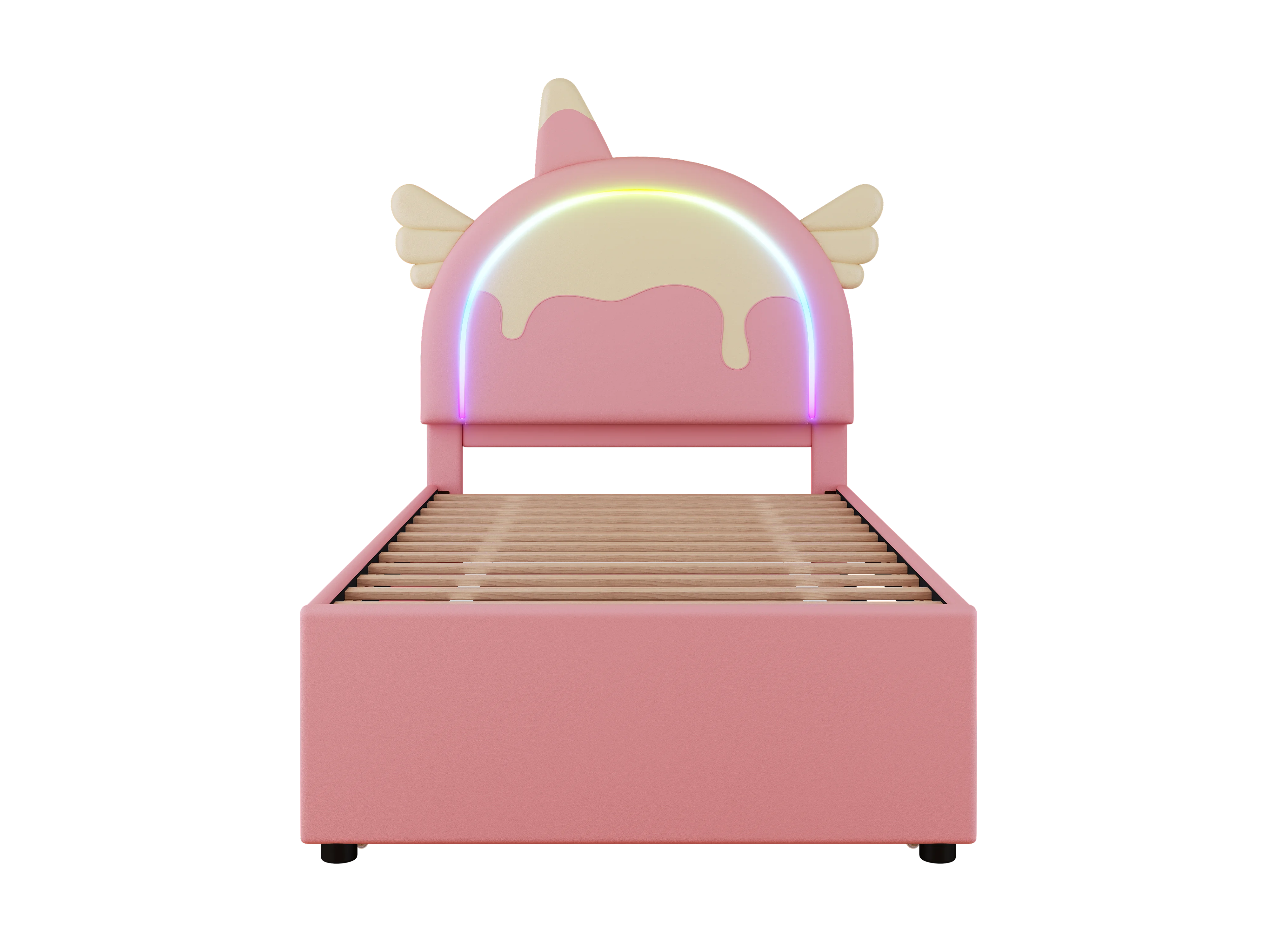 Letto estraibile 90 x 200 cm + 90 x 190 cm con 3 cassetti - Testiera a forma di unicorno - Similpelle - Rosa
