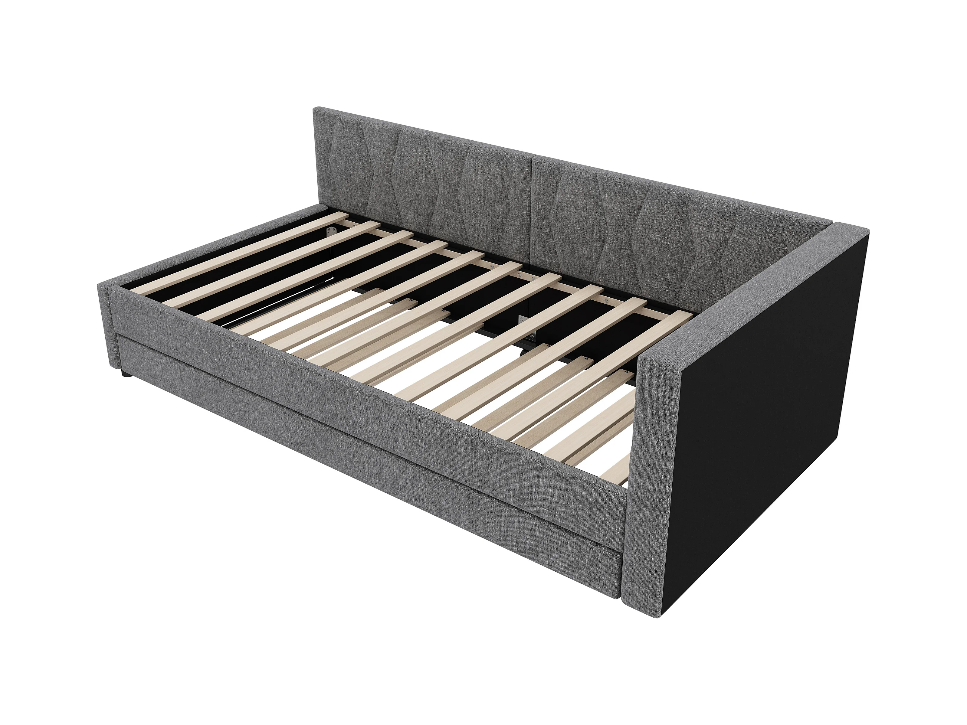 Letto imbottito per bambini 90x200 cm con letto estraibile 90x190 cm con cassetti per contenimento, in lino, senza materasso, grigio