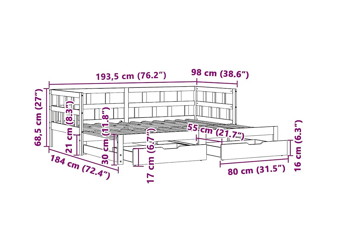 Letto Estraibile con Cassetti senza Materasso Bianco 90x190 cm