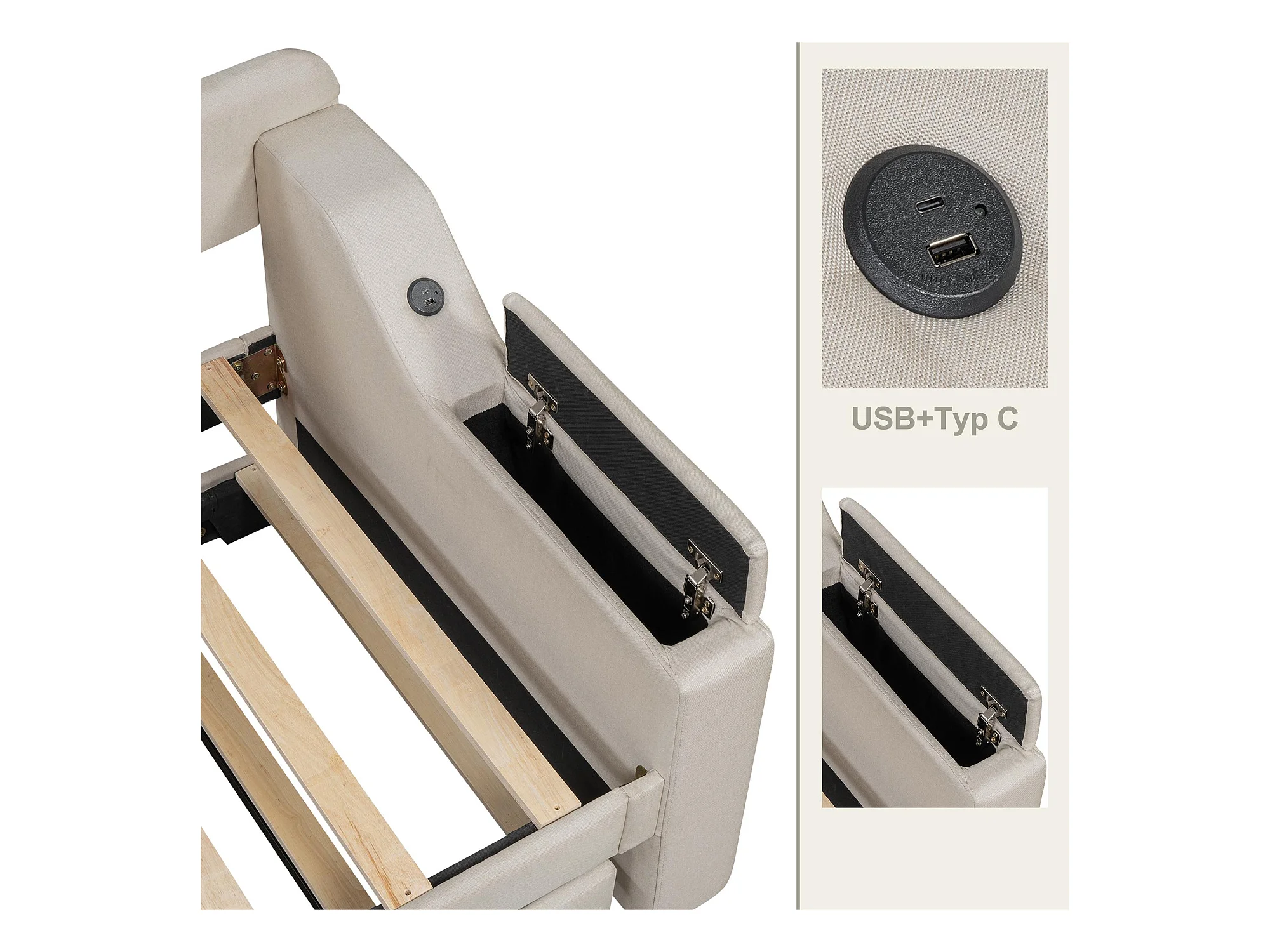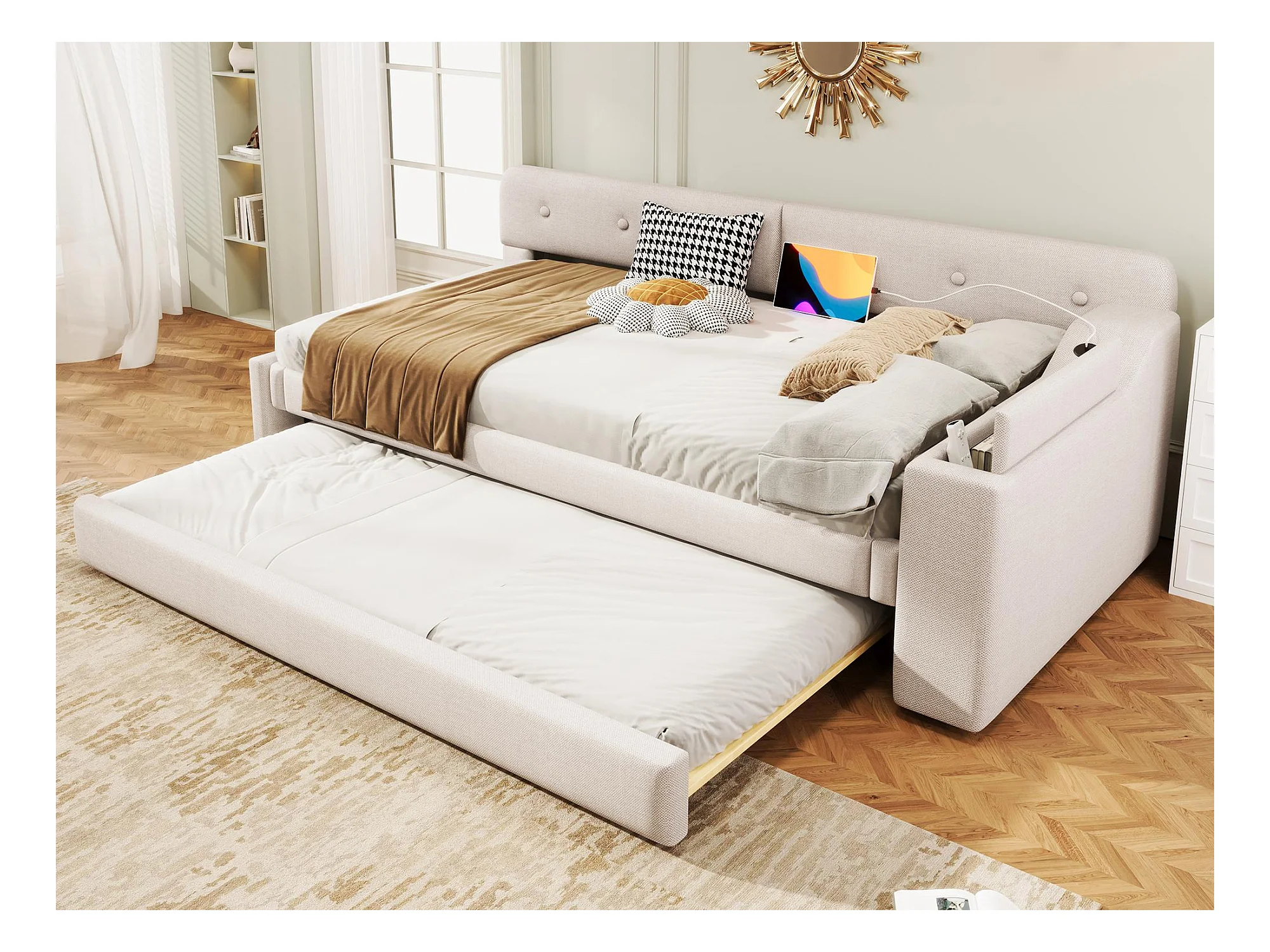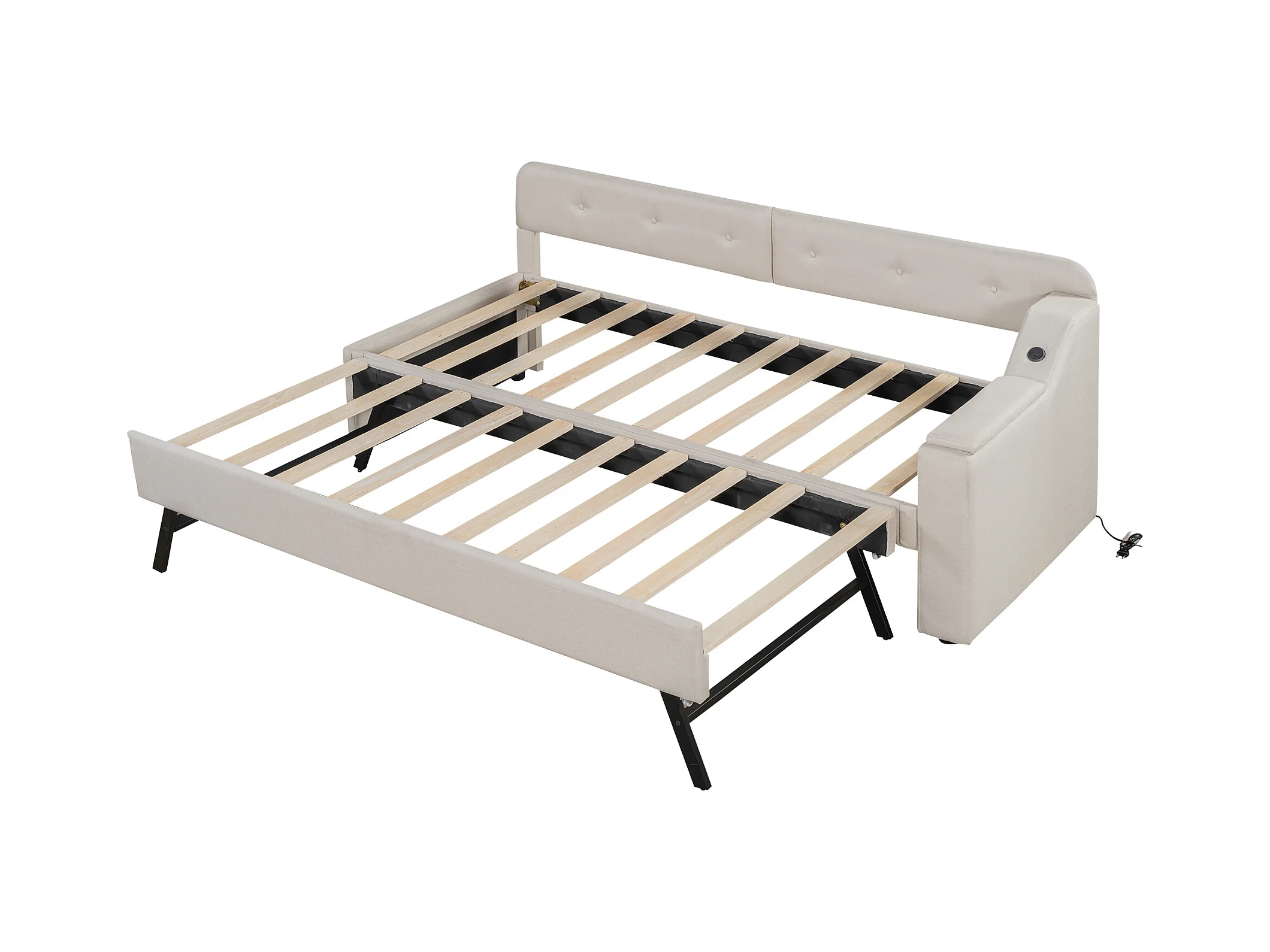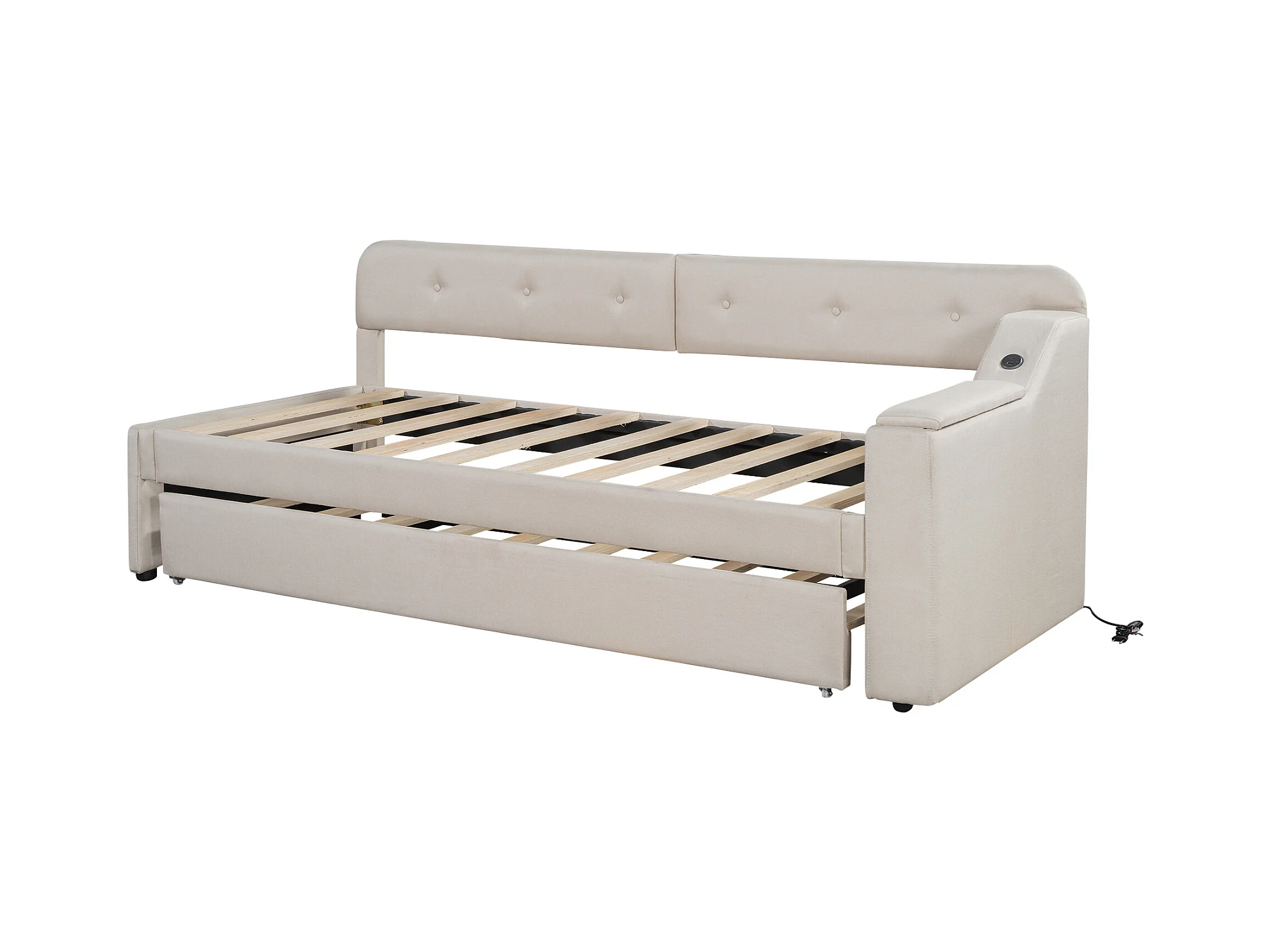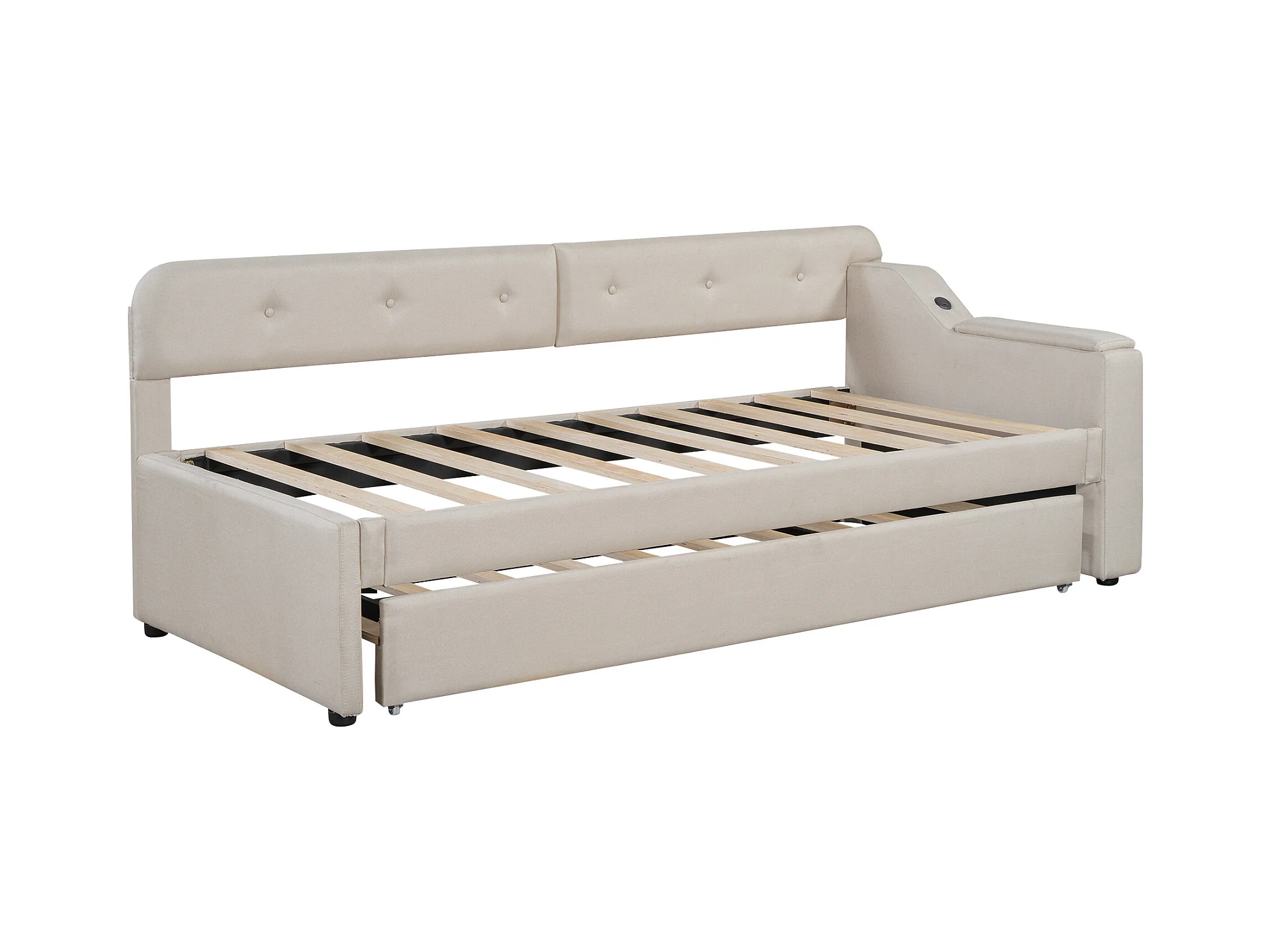 Letto estraibile in lino 90x200 cm - contenitore pieghevole con prese - Beige
