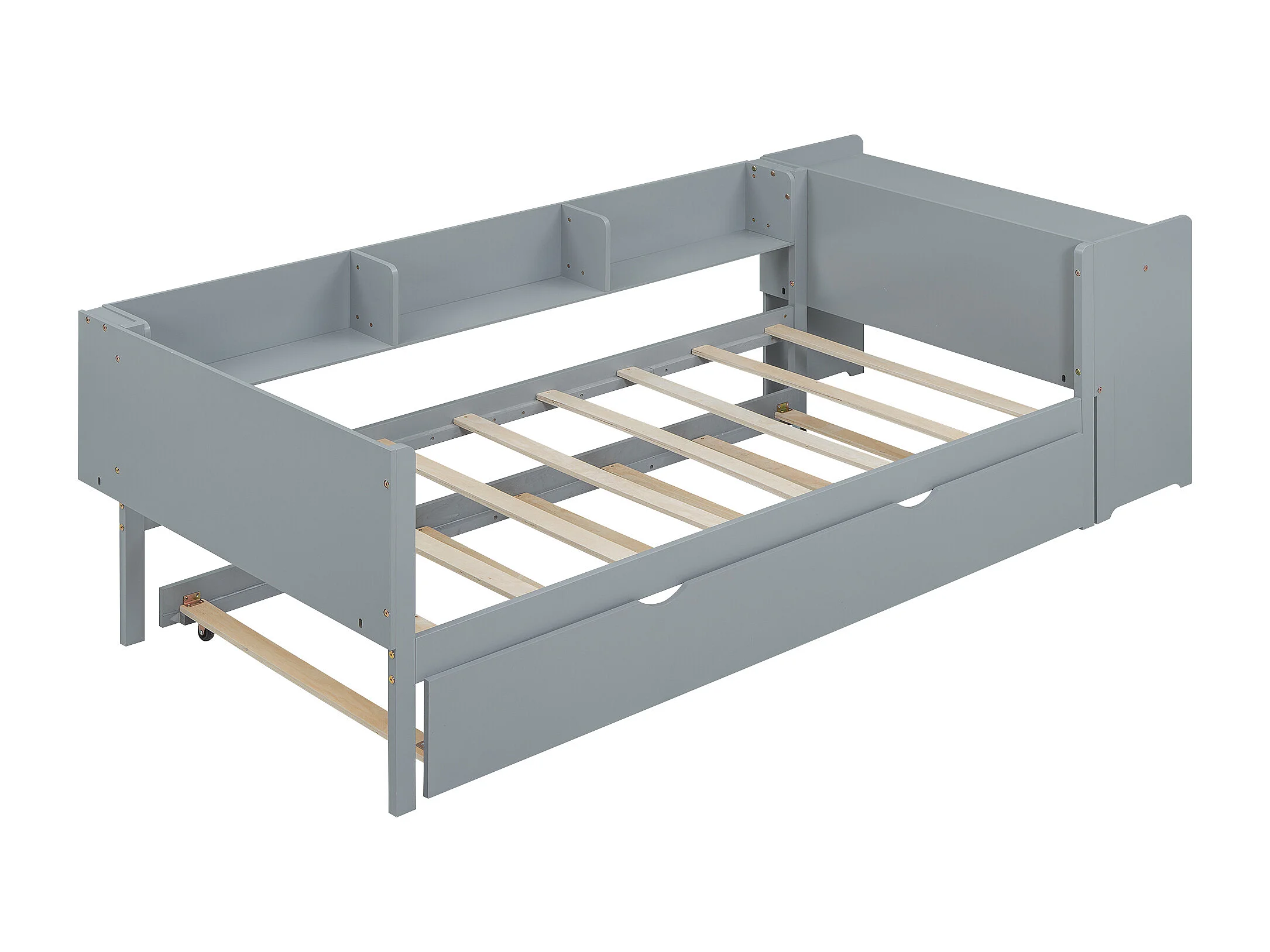 Letto estraibile per bambini 90x200 cm con base - scrivania e 3 ripiani - legno - grigio (senza materasso)
