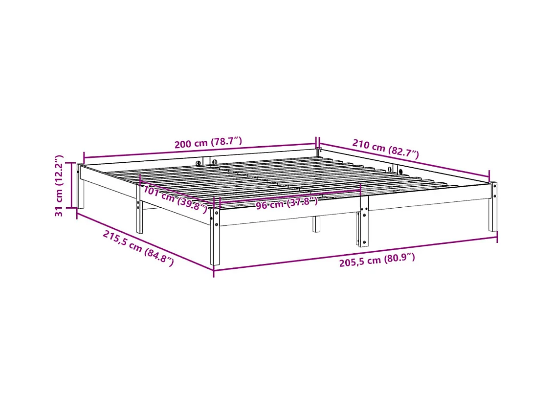 Letto Extra Lungo senza Materasso 200x210 cm in Legno di Pino