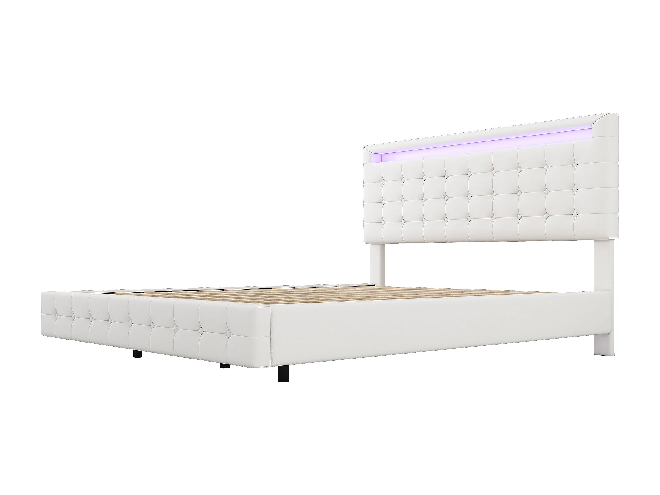 Letto imbottito 140 x 200 cm, Letto sospeso con testiera - Pelle PU - LED - Rete a doghe - Bianco
