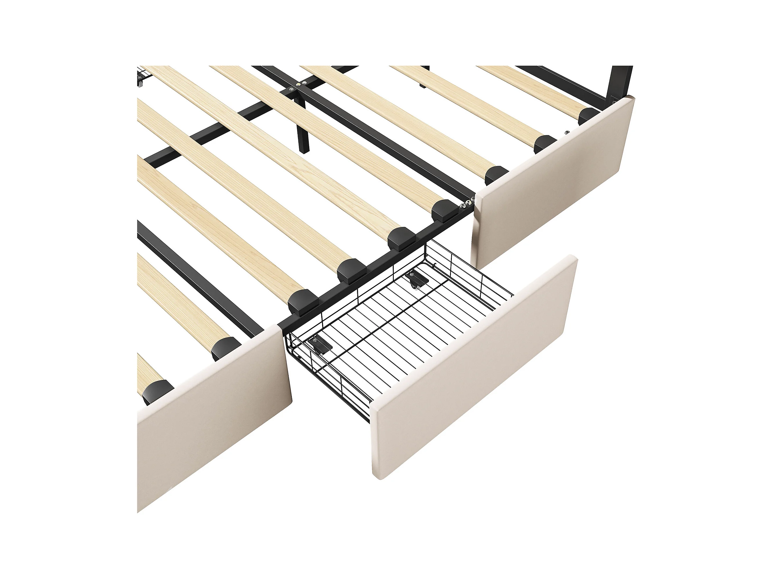 Letto matrimoniale 160x200 cm imbottito con cassetti contenitore e porta USB, Velvet, beige