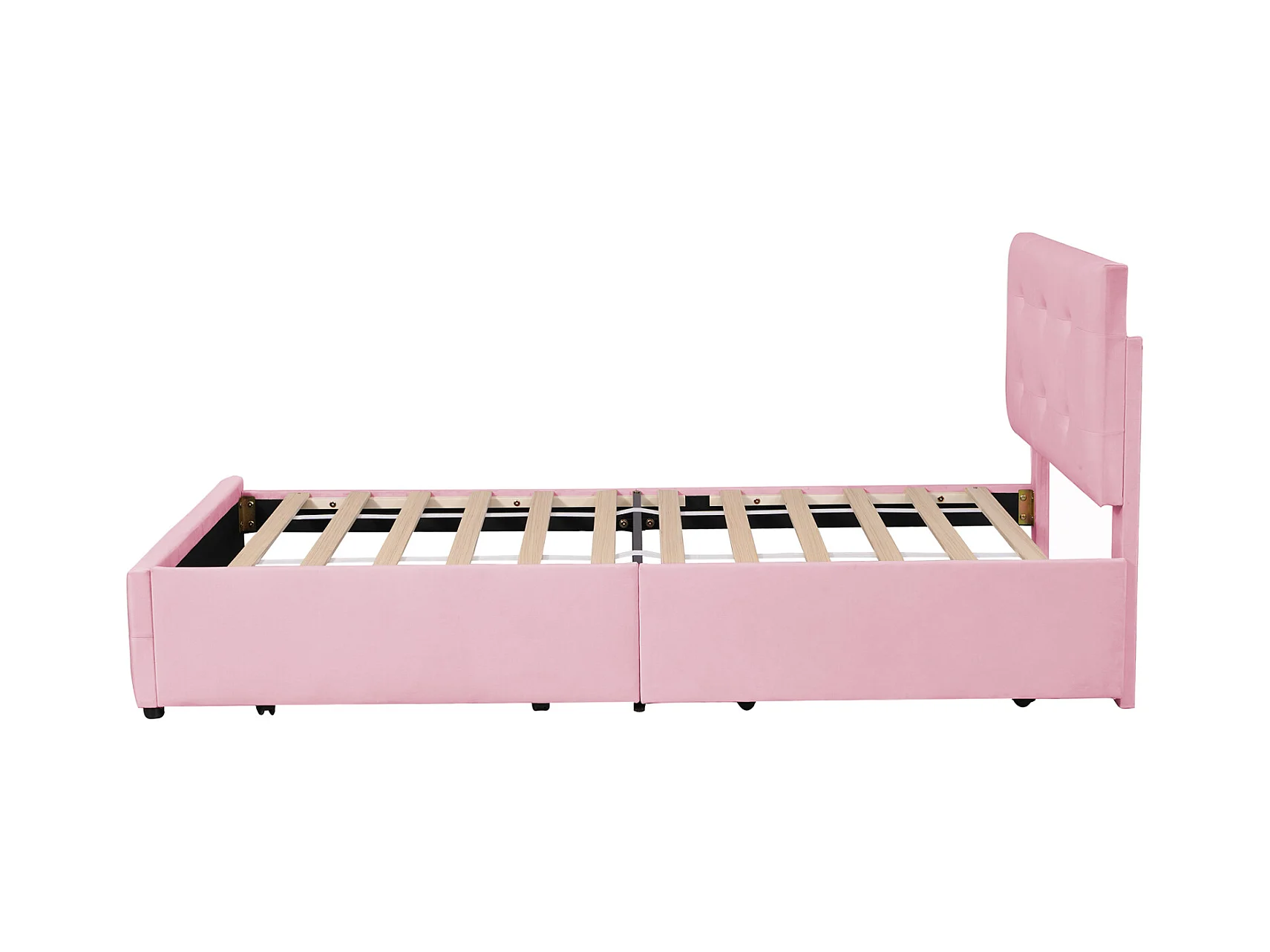 Letto per bambini 90 x 200 cm - Letto per ragazzi con 2 cassetti e schienale - velluto rosa - senza materasso