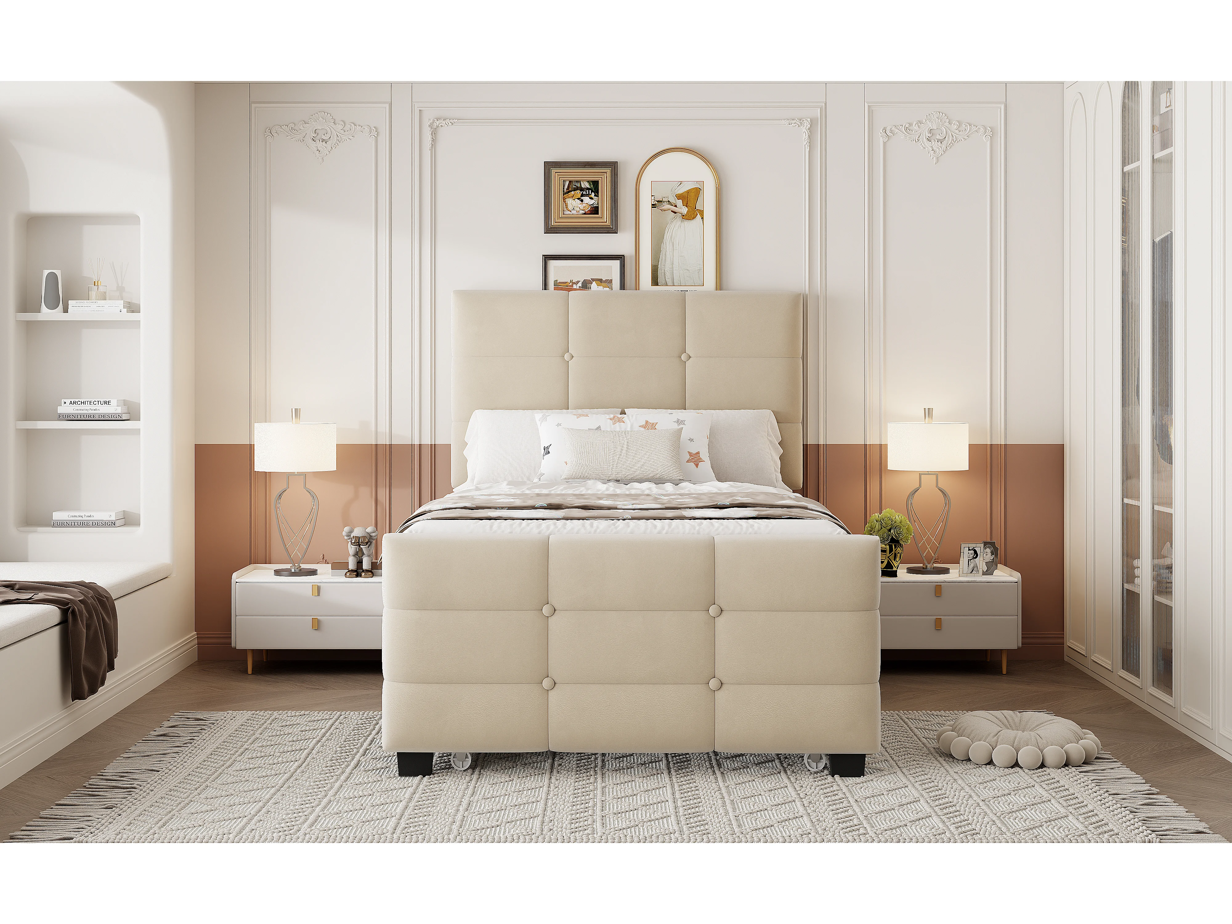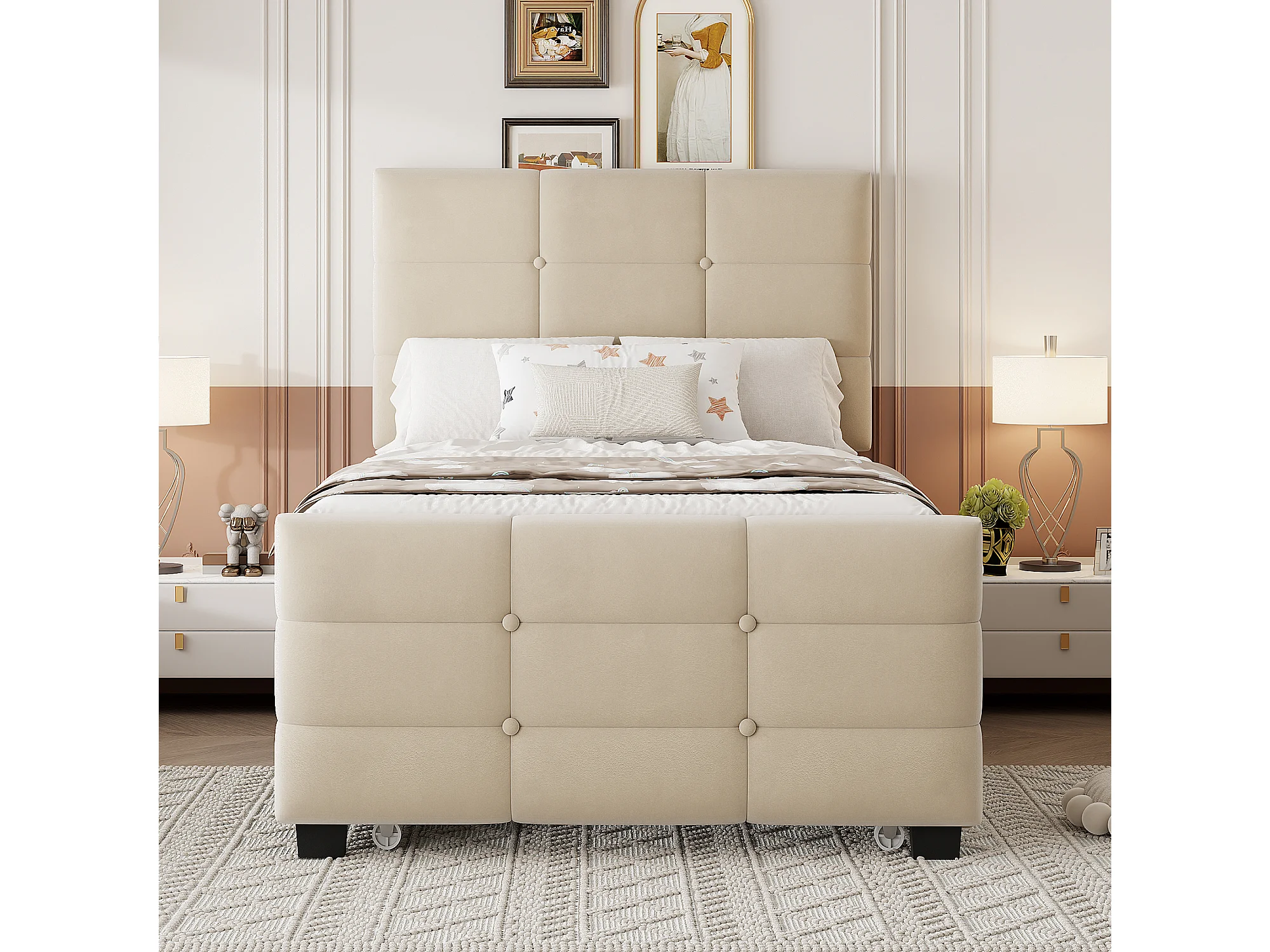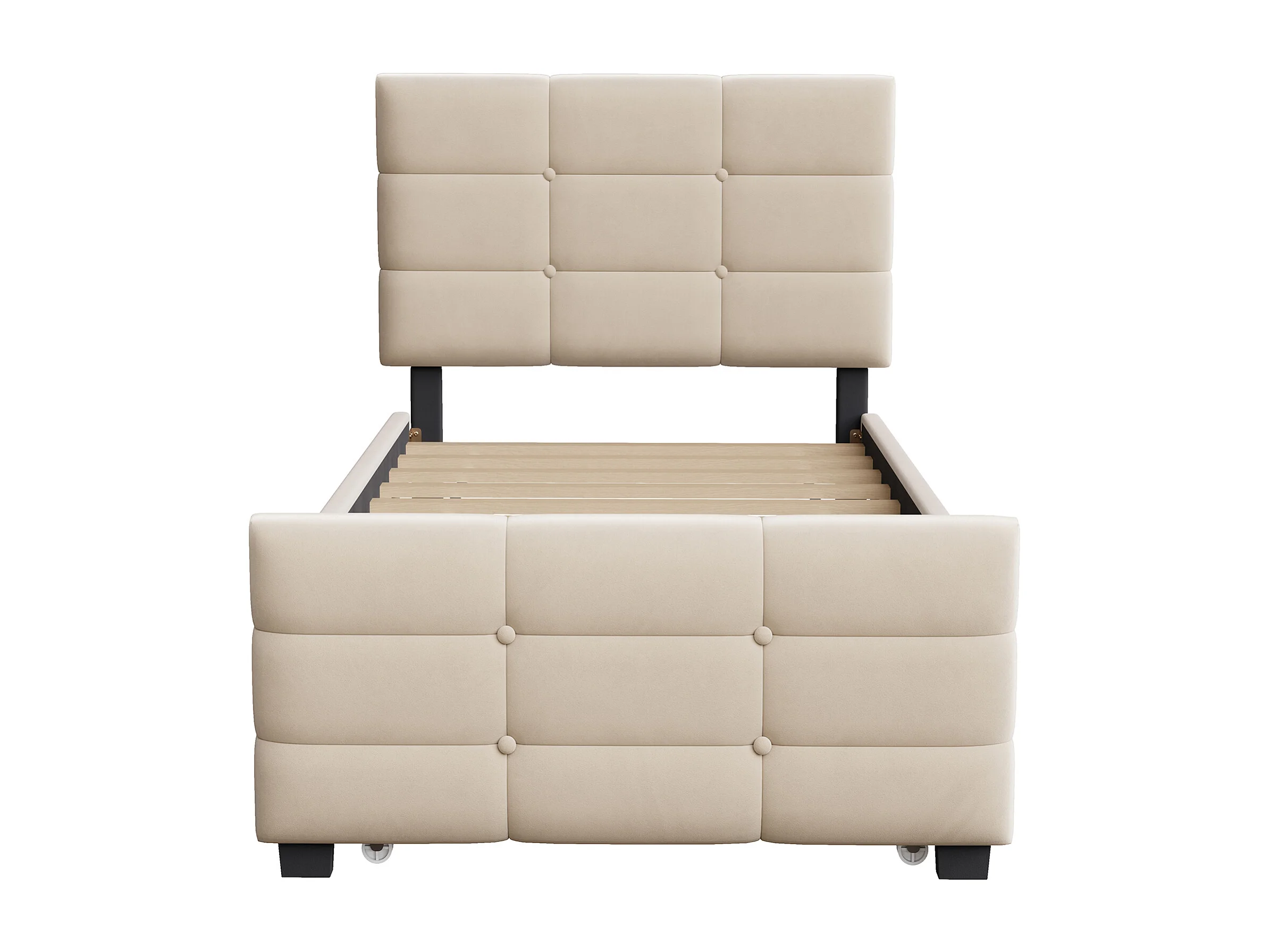 Letto imbottito per bambini - 90 x 190 cm - con letto estraibile 90 x 190 + testiera - MDF + Metallo + Velluto - beige