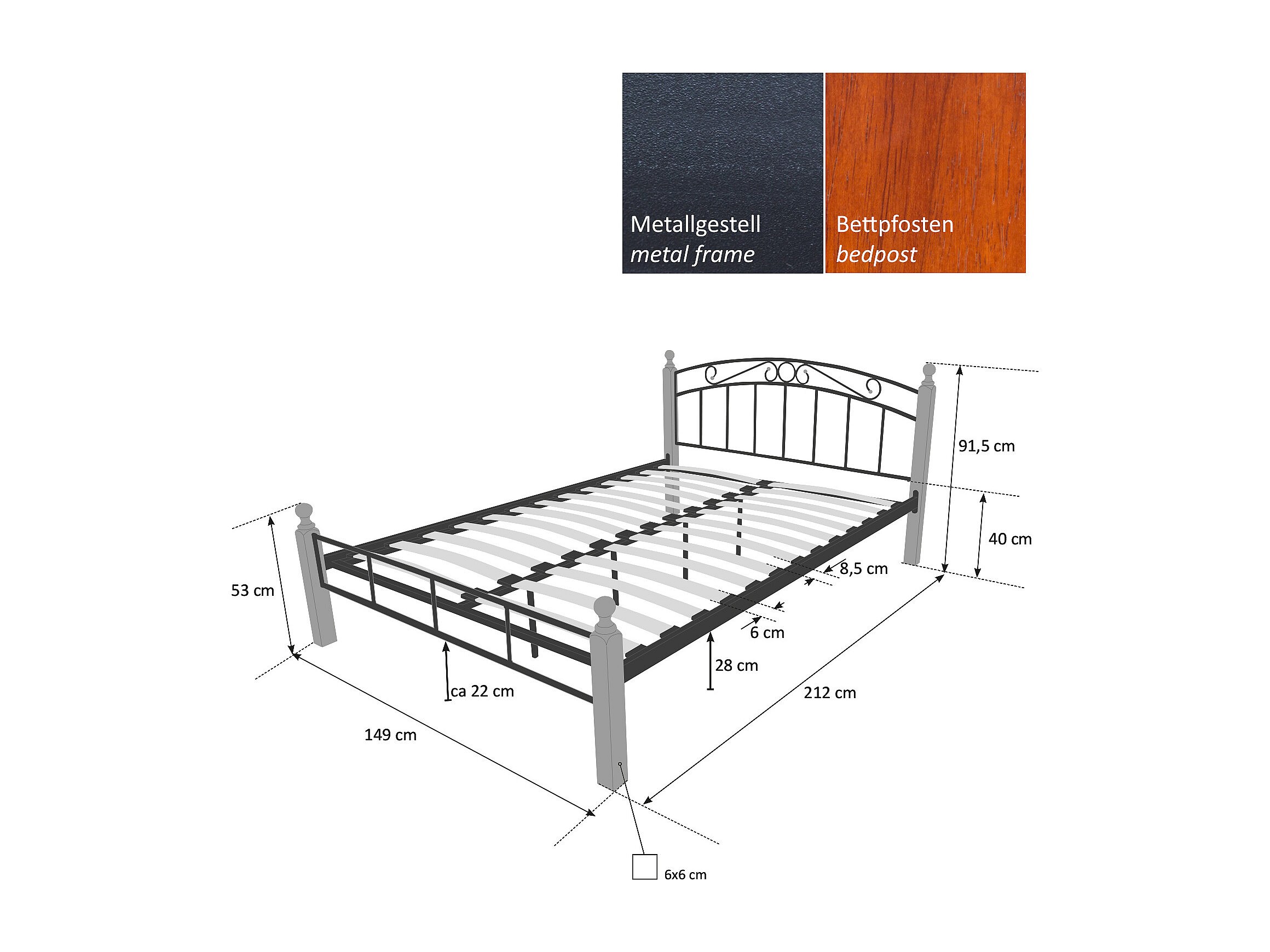Letto in ferro 140x200 cm nero marrone 916