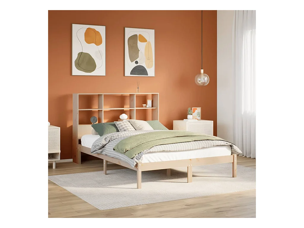 Letto Libreria senza Materasso Marrone Cera 140x200 cm in Pino