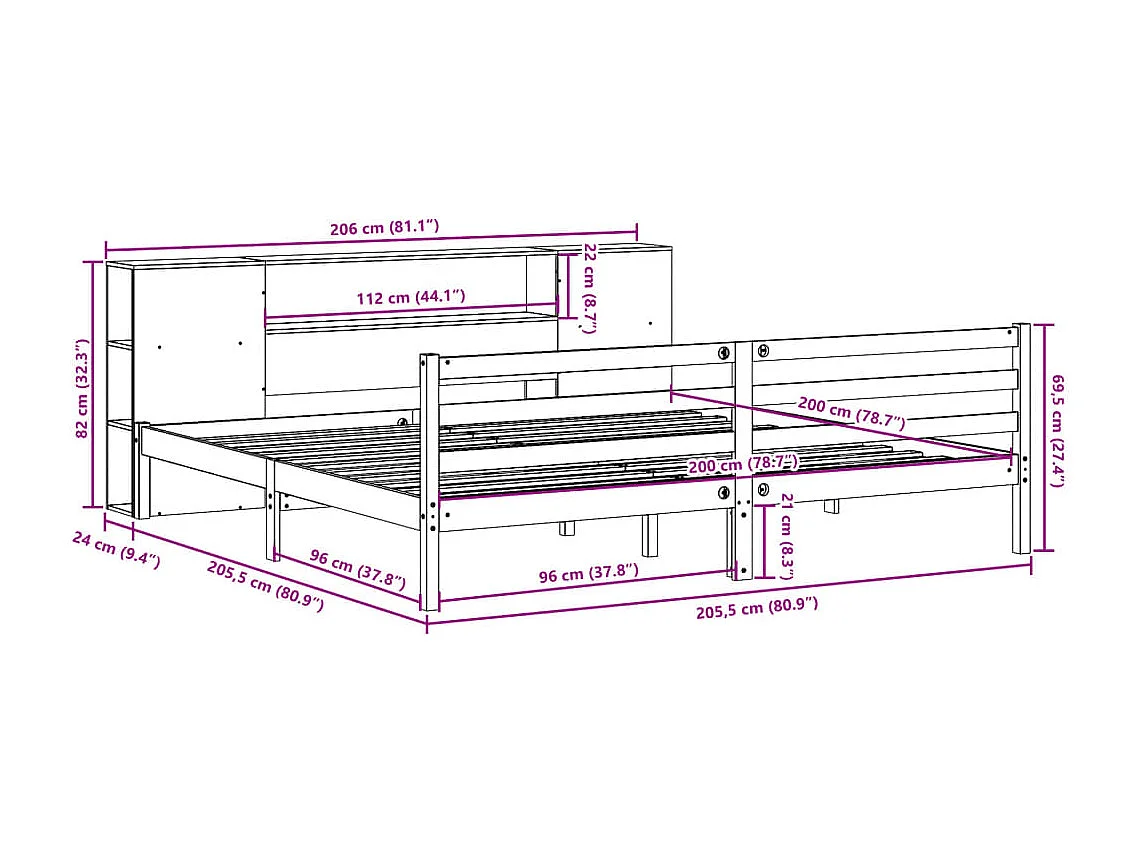 Letto Libreria senza Materasso 200x200 cm in Legno di Pino
