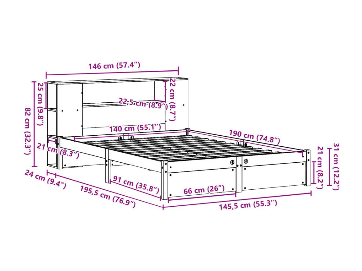 Letto Libreria senza Materasso Bianco 140x190 cm Legno di Pino