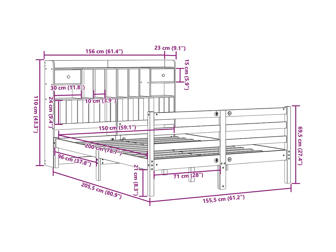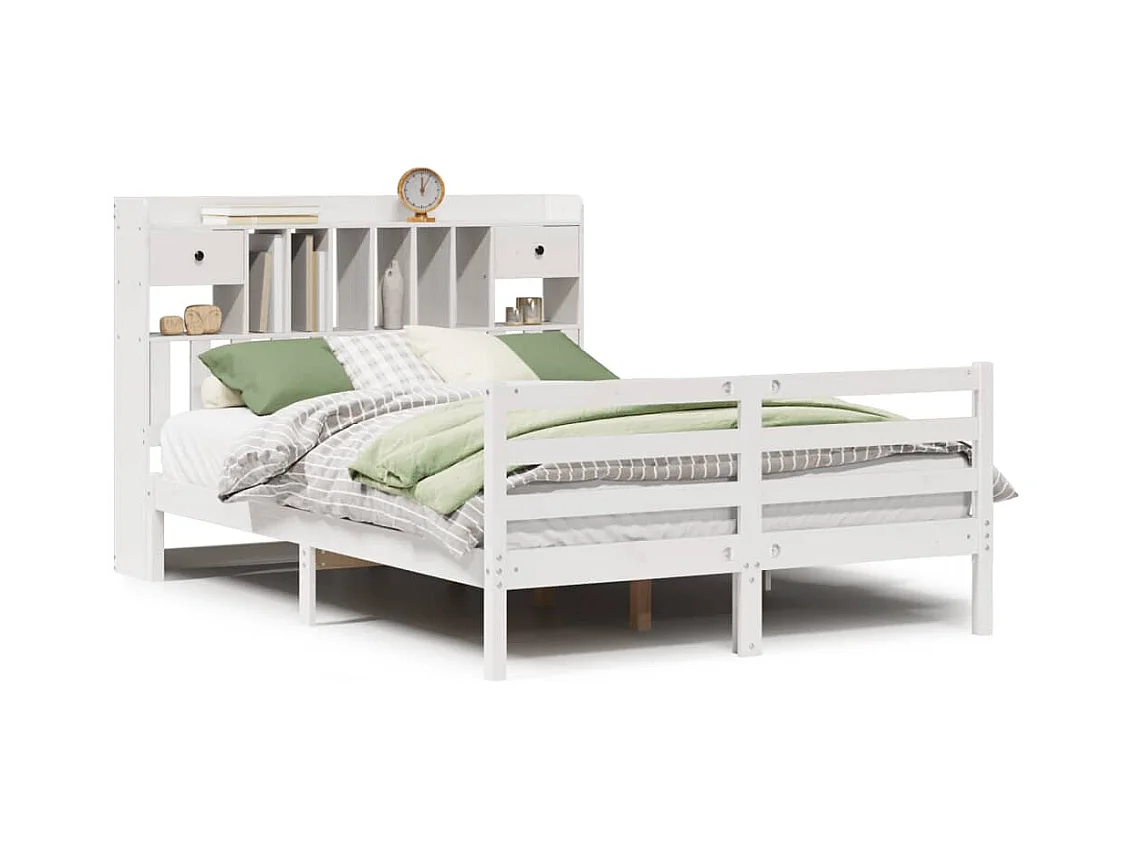 Letto Libreria senza Materasso Bianco 150x200 cm Legno di Pino