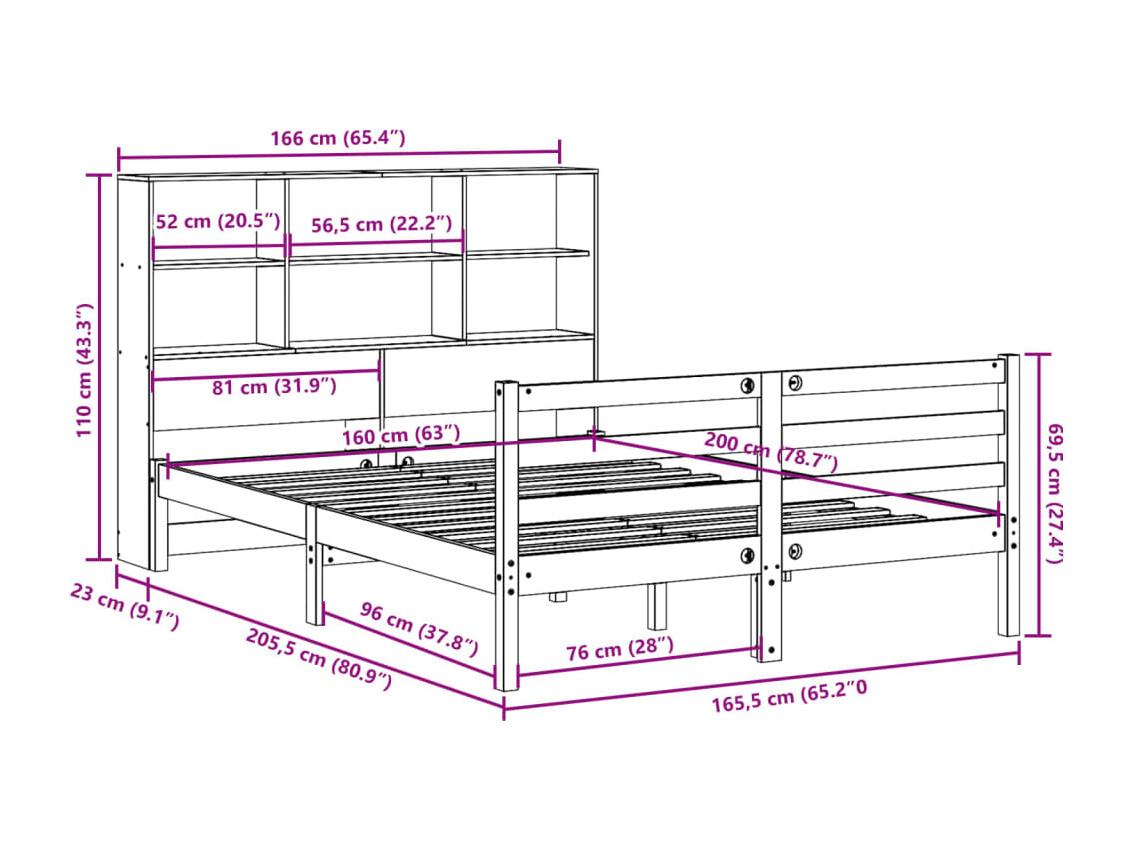 Letto Libreria senza Materasso Marrone Cera 160x200 cm in Pino