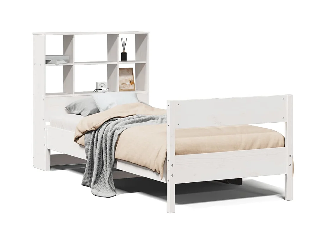 Letto Libreria senza Materasso Bianco 90x190 cm Massello Pino