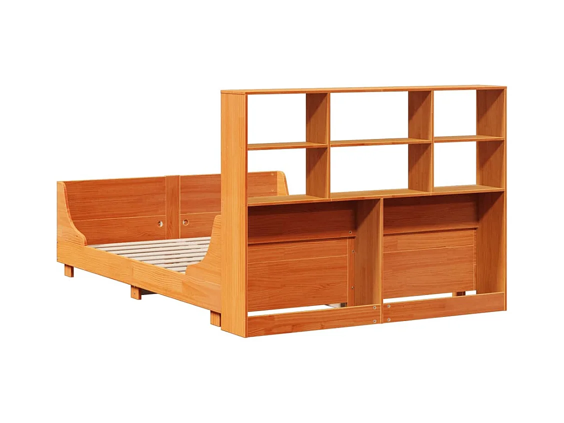 Letto libreria senza materasso, cera marrone, 160x200cm, legno massello