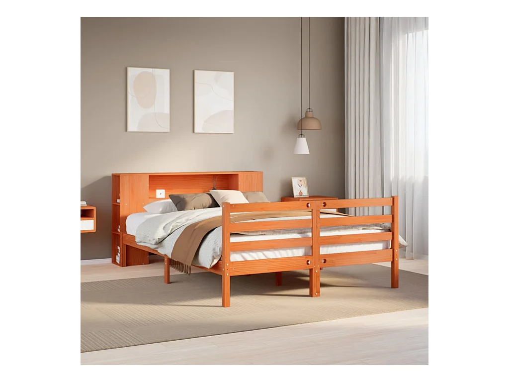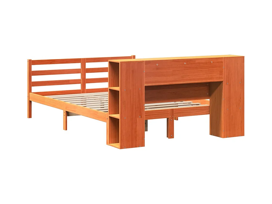 Letto Libreria senza Materasso Marrone Cera 120x190 cm in Pino