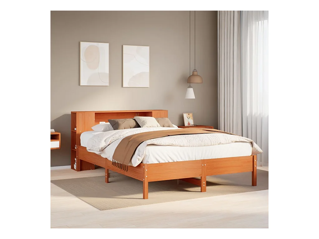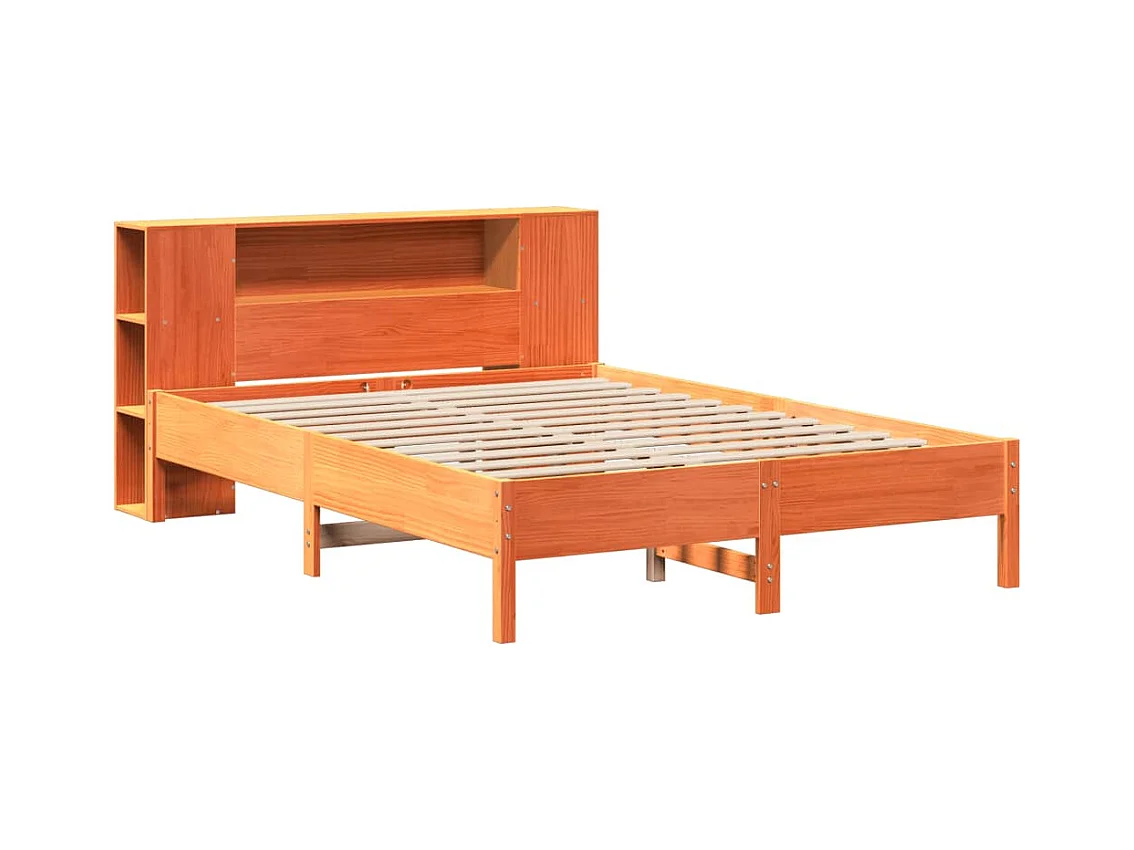 Letto Libreria senza Materasso Marrone Cera 150x200 cm in Pino