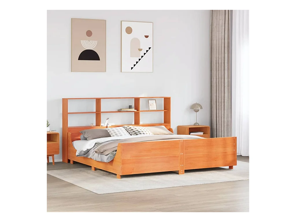Letto Libreria senza Materasso Marrone Cera 180x200 cm in Pino