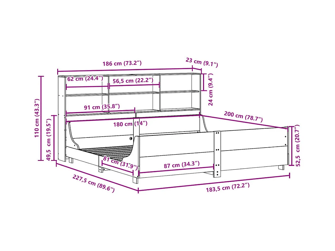 Letto Libreria senza Materasso 180x200 cm Legno Massello