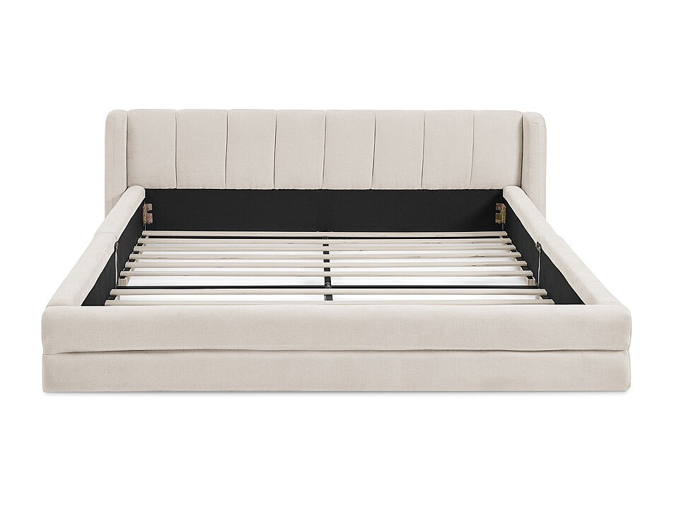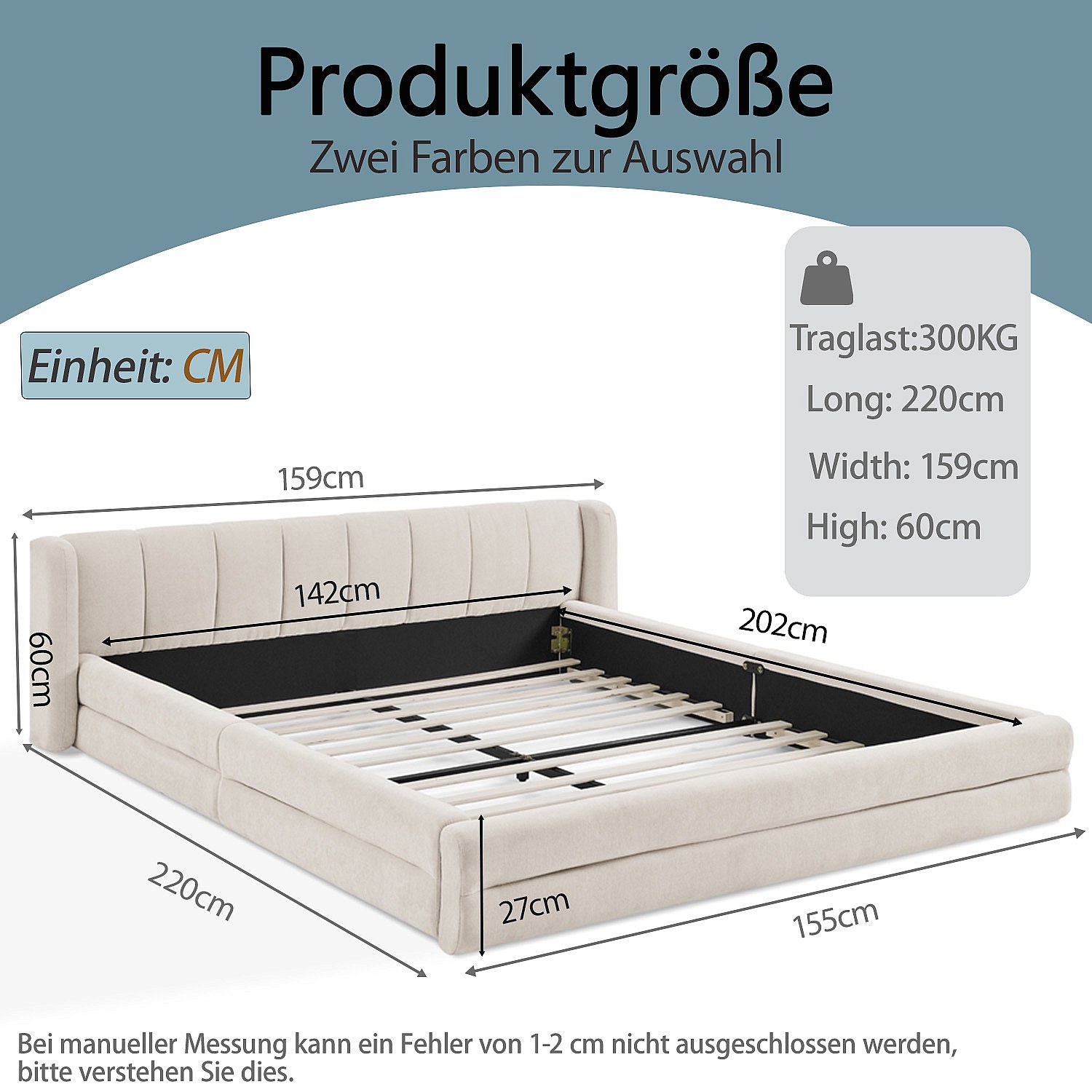 Letto matrimoniale 140x200 cm in lino beige, letto imbottito, rete a doghe, senza materasso