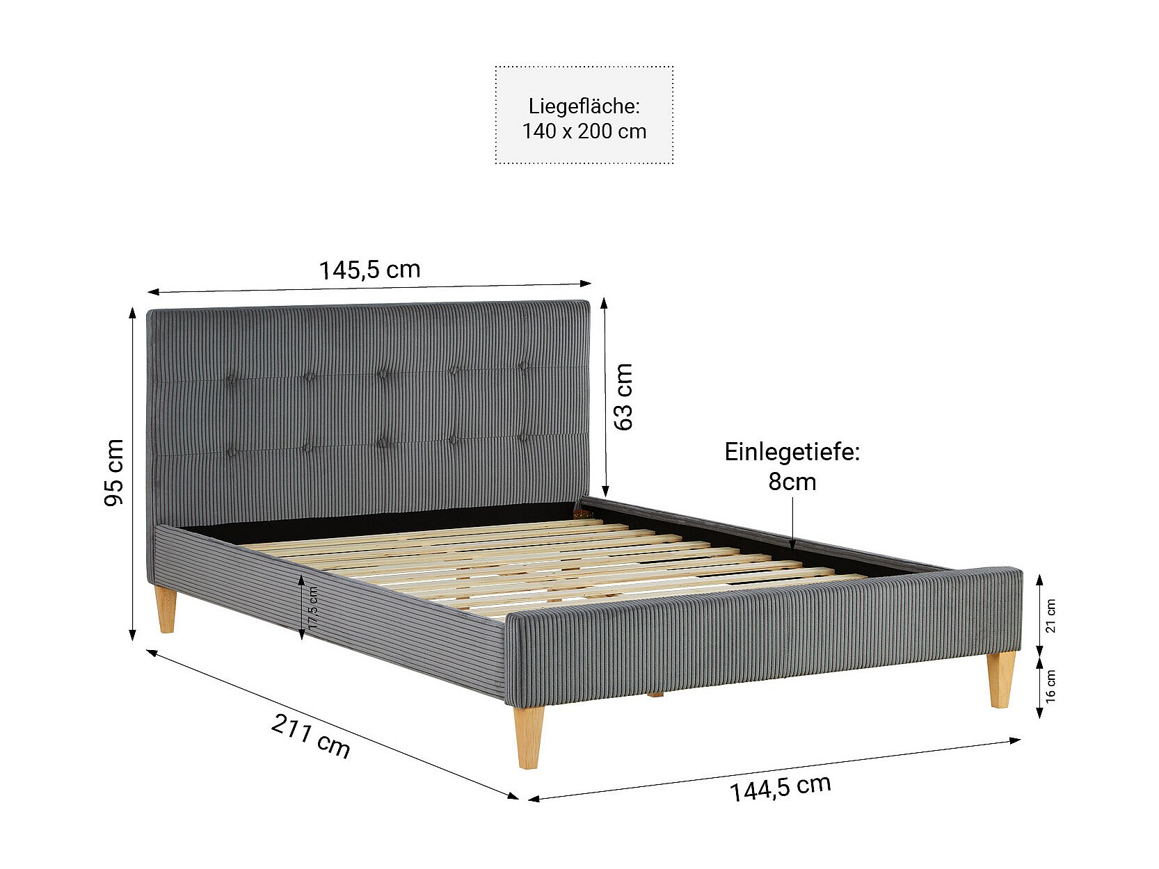 Letto Legno MAYENNE 140 x 200 cm Grigio