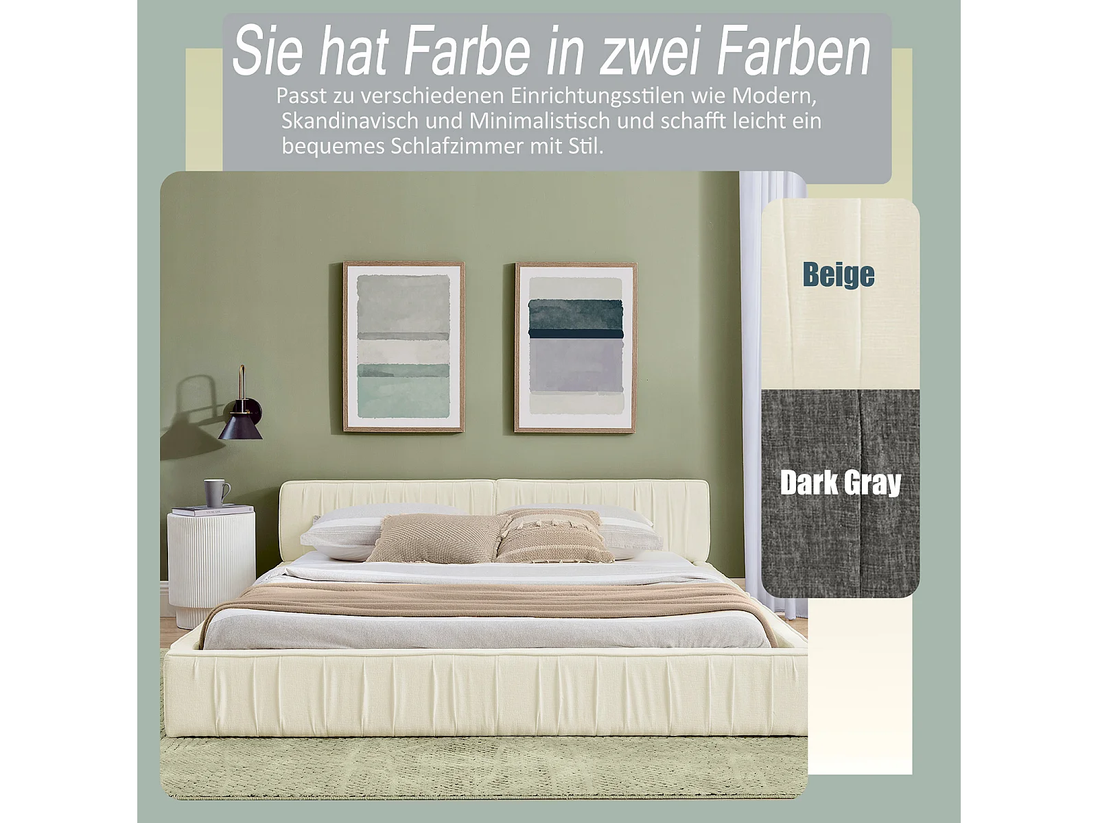 Letto matrimoniale 140×200 cm in ciniglia, con 4 ampi cassetti portaoggetti, facile da montare, ideale per la camera degli ospiti– Beige
