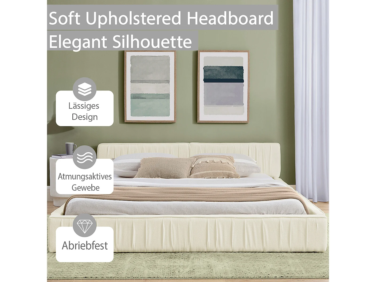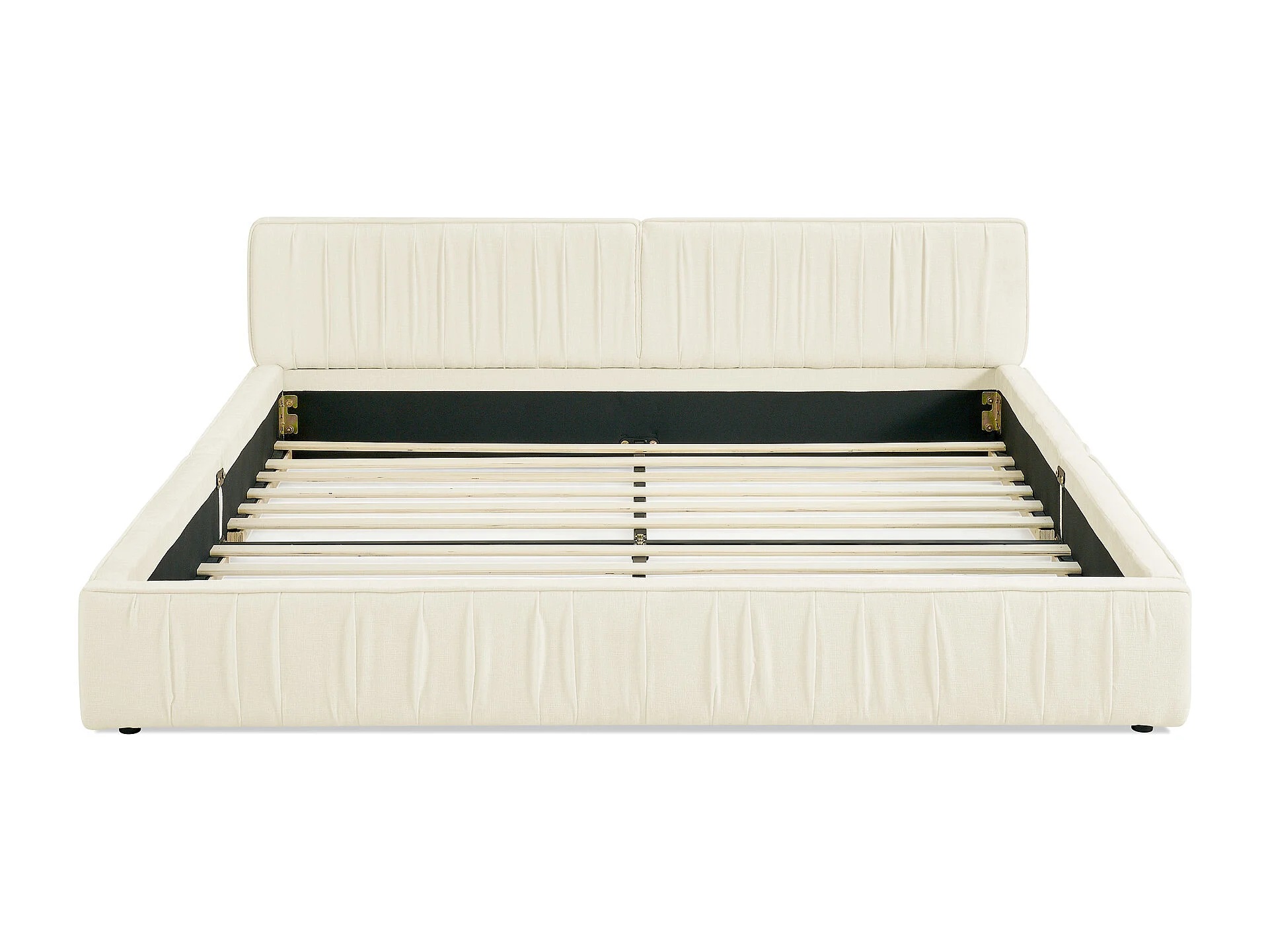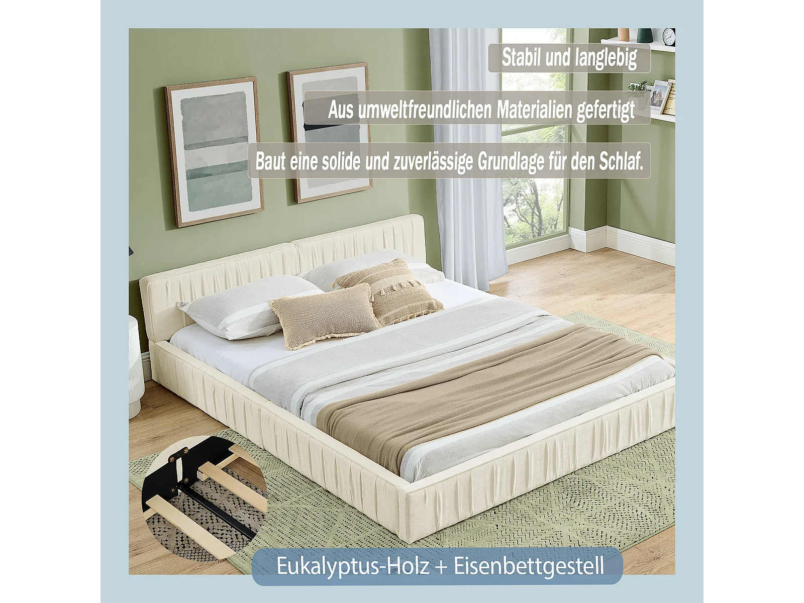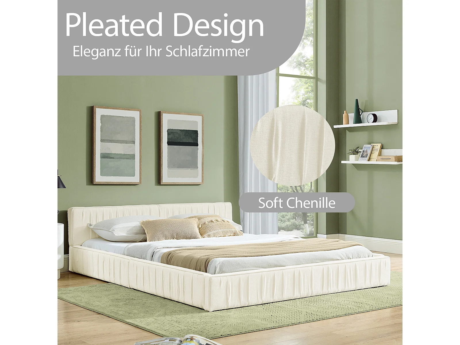 Letto matrimoniale 140×200 cm in morbida ciniglia, struttura in eucalipto ecologico e metallo, montaggio facile – Beige