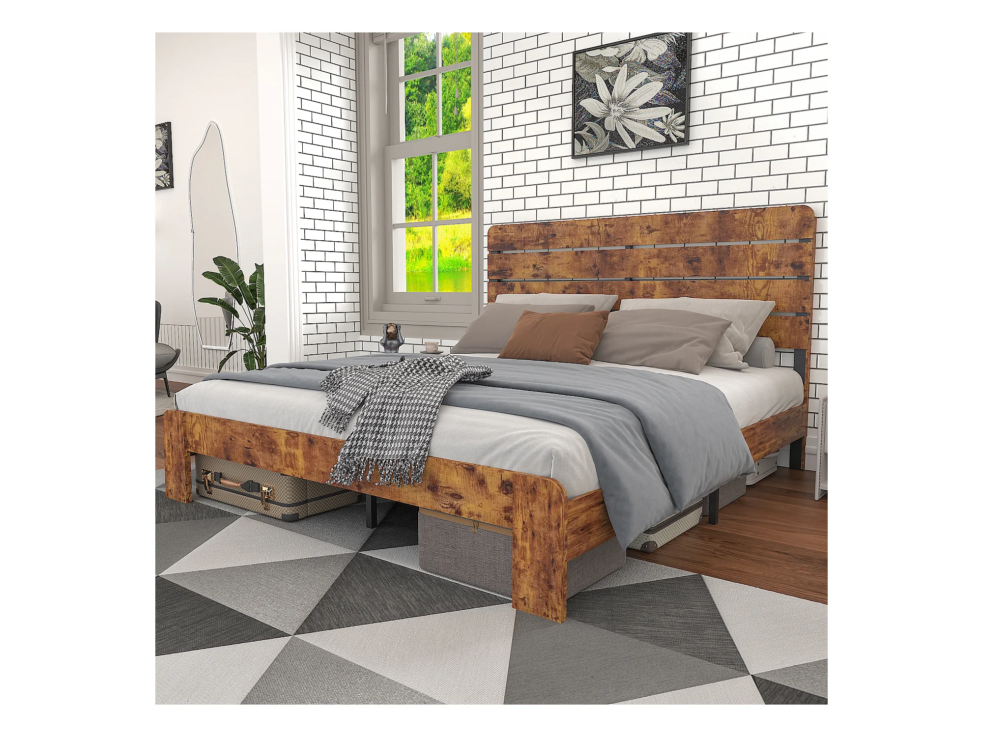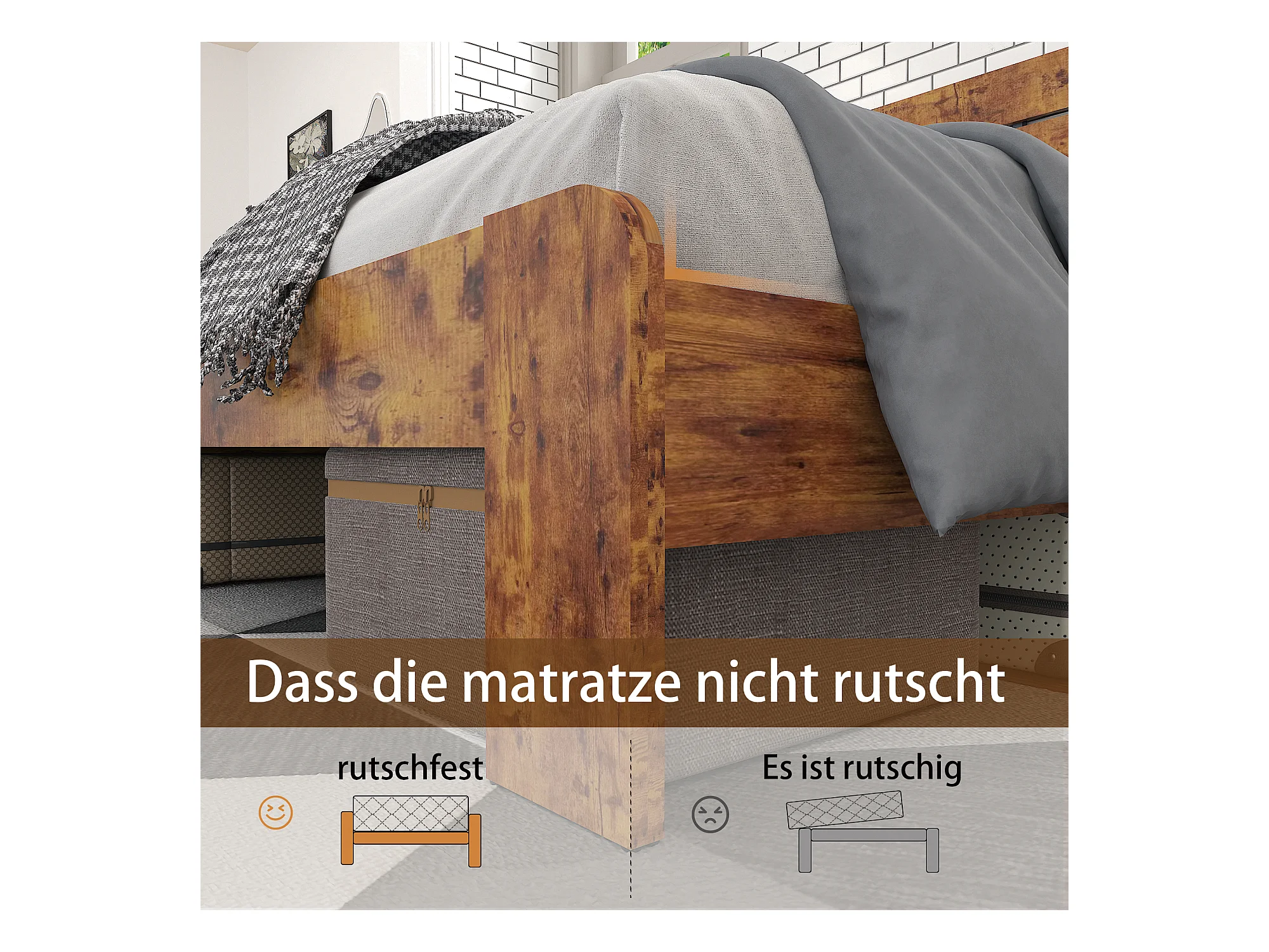 Letto matrimoniale 140x200cm con doghe in ferro e testiera alta, metallo + MDF, marrone
