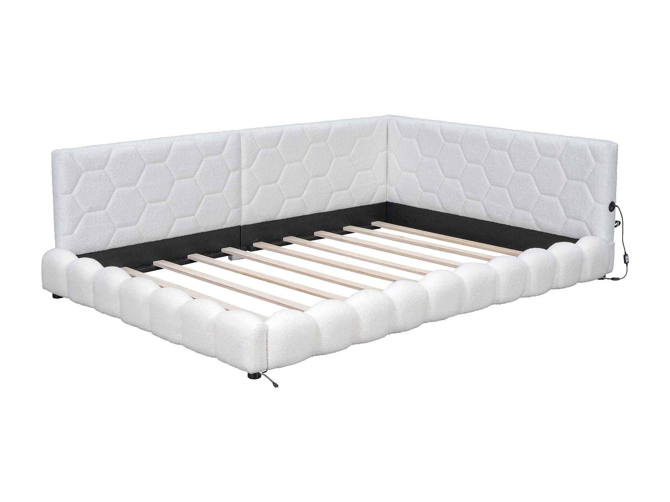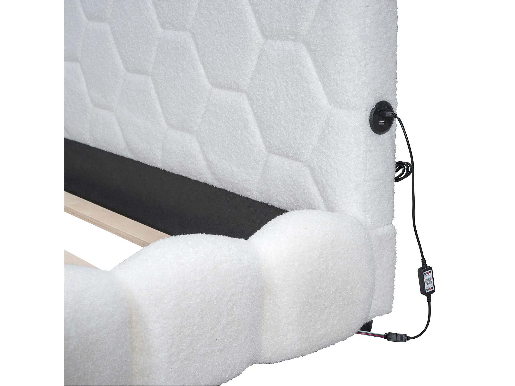 Letto matrimoniale 140x200cm - Divano letto con luce ambientale a 16 colori, porta USB - Peluche - Bianco