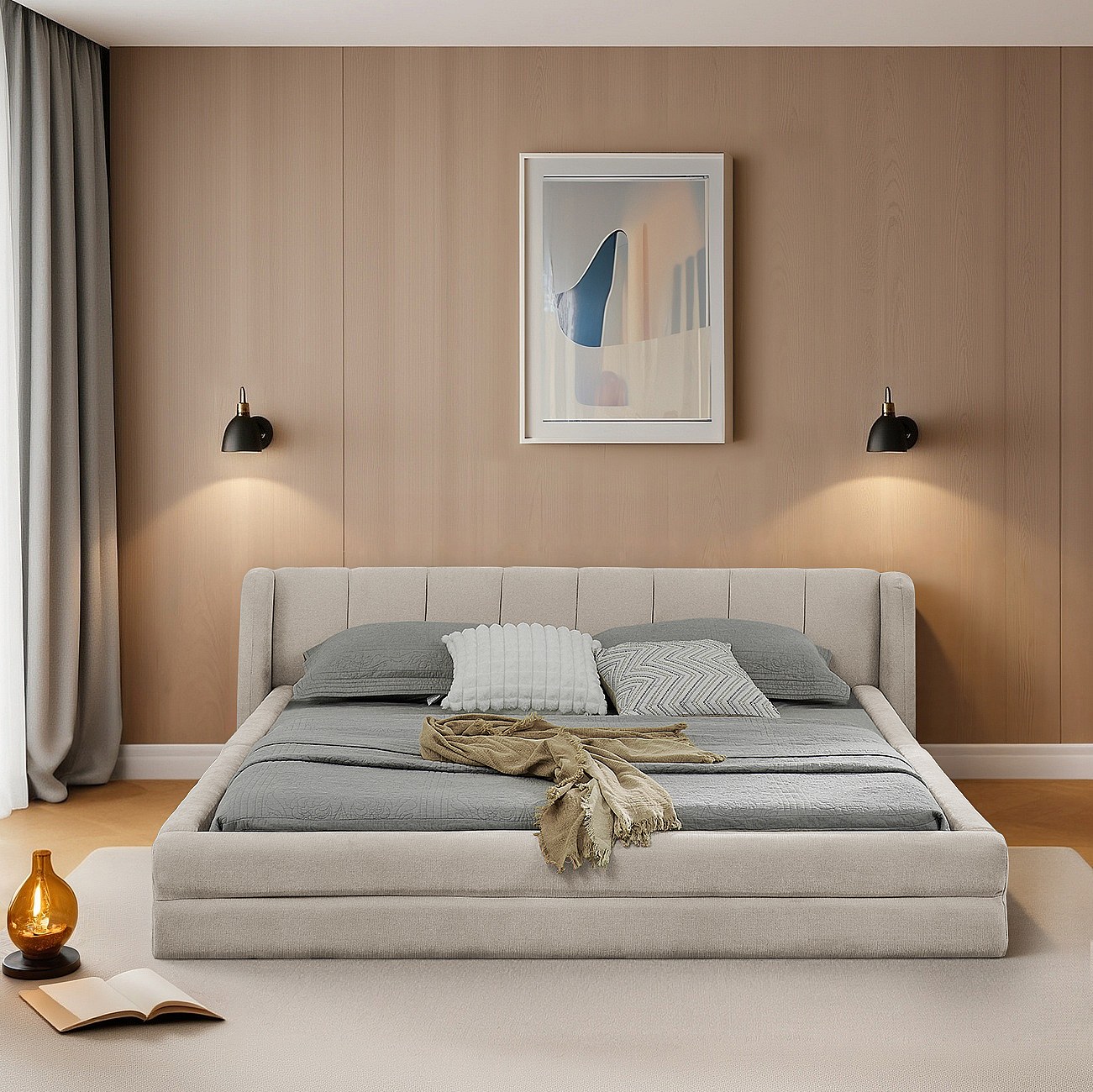 Letto in tessuto panna con testiera per materasso WAKA 160 x 200