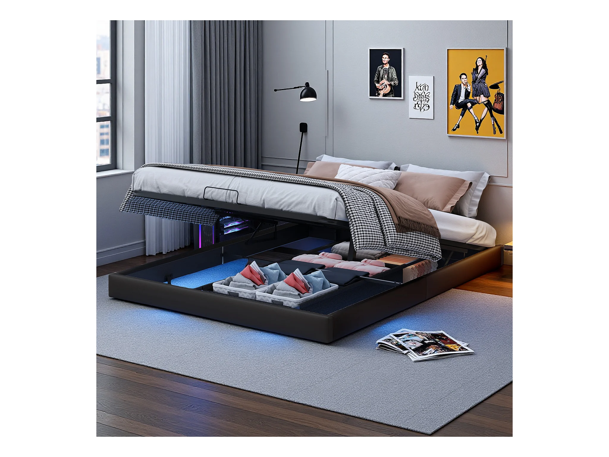 Letto con contenitori e cassetti