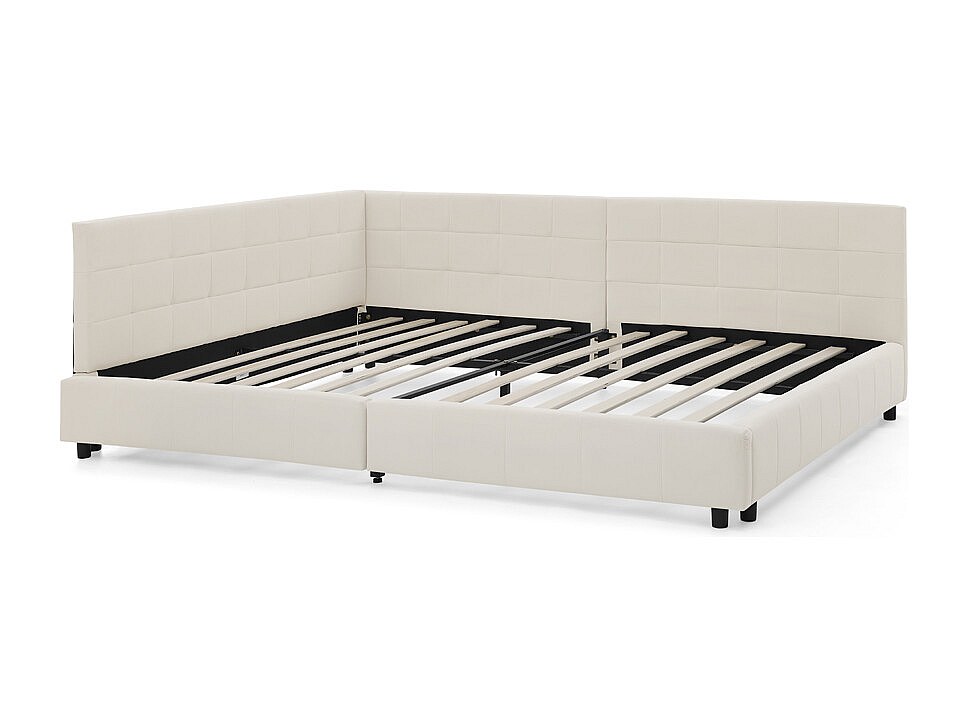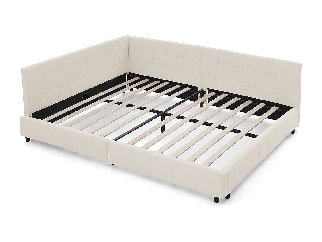 Letto matrimoniale 160x200cm, letto imbottito per adulti con rete a doghe in legno e testiera, letto per ragazzi, letto per bambini - in velluto beige