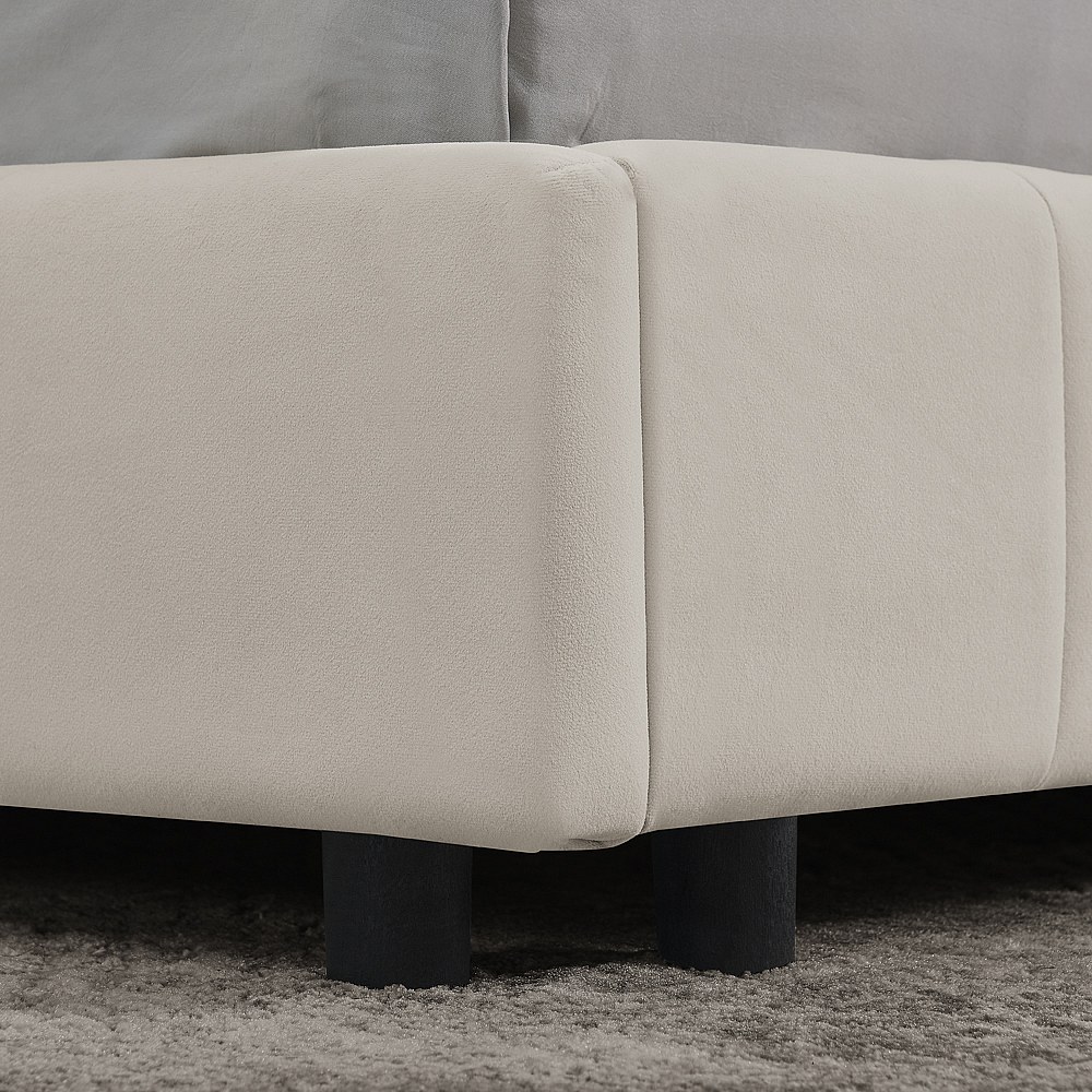 Letto matrimoniale beige per adulti 160x200cm, schienale alto, tessuto in velluto, senza materasso