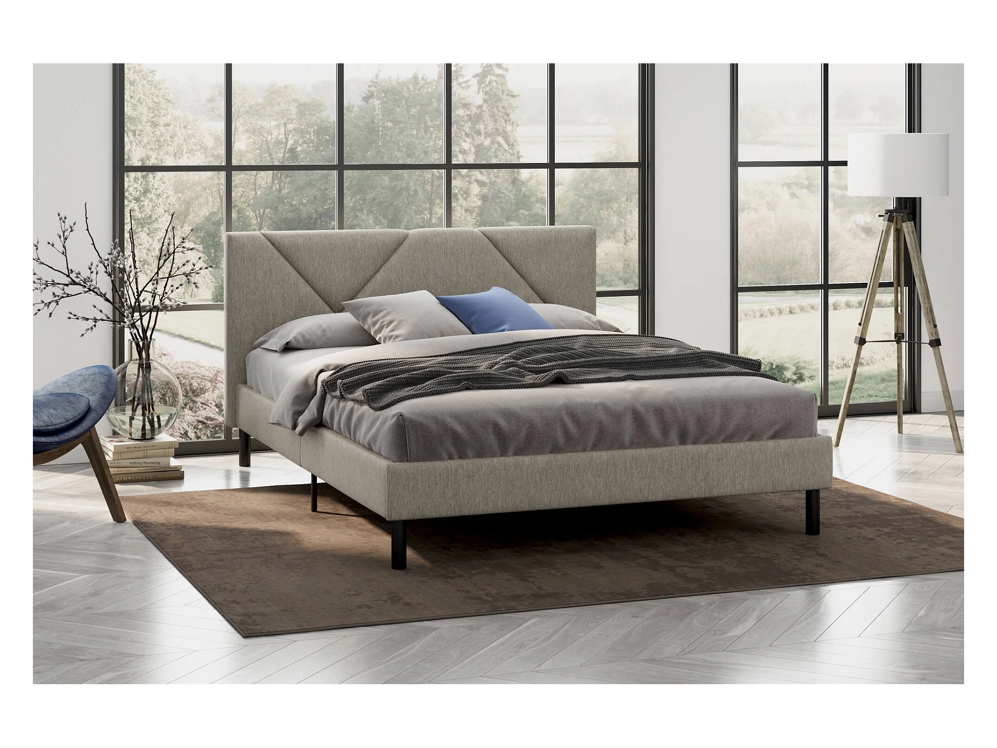 Letto matrimoniale Caldes, Letto imbottito in tessuto con testiera, Doghe in legno, adatto a materasso da 160x190, Tortora