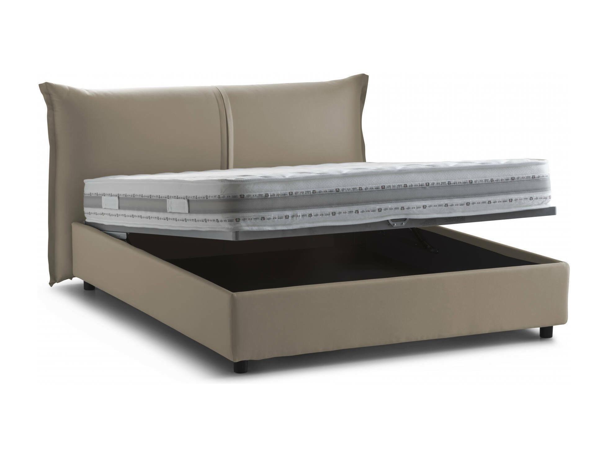 LETTO MATRIMONIALE - Letto contenitore con rivestimento in tessuto, 100% Made in Italy, Apertura frontale, adatto per materasso Cm 160x200, Tortora.