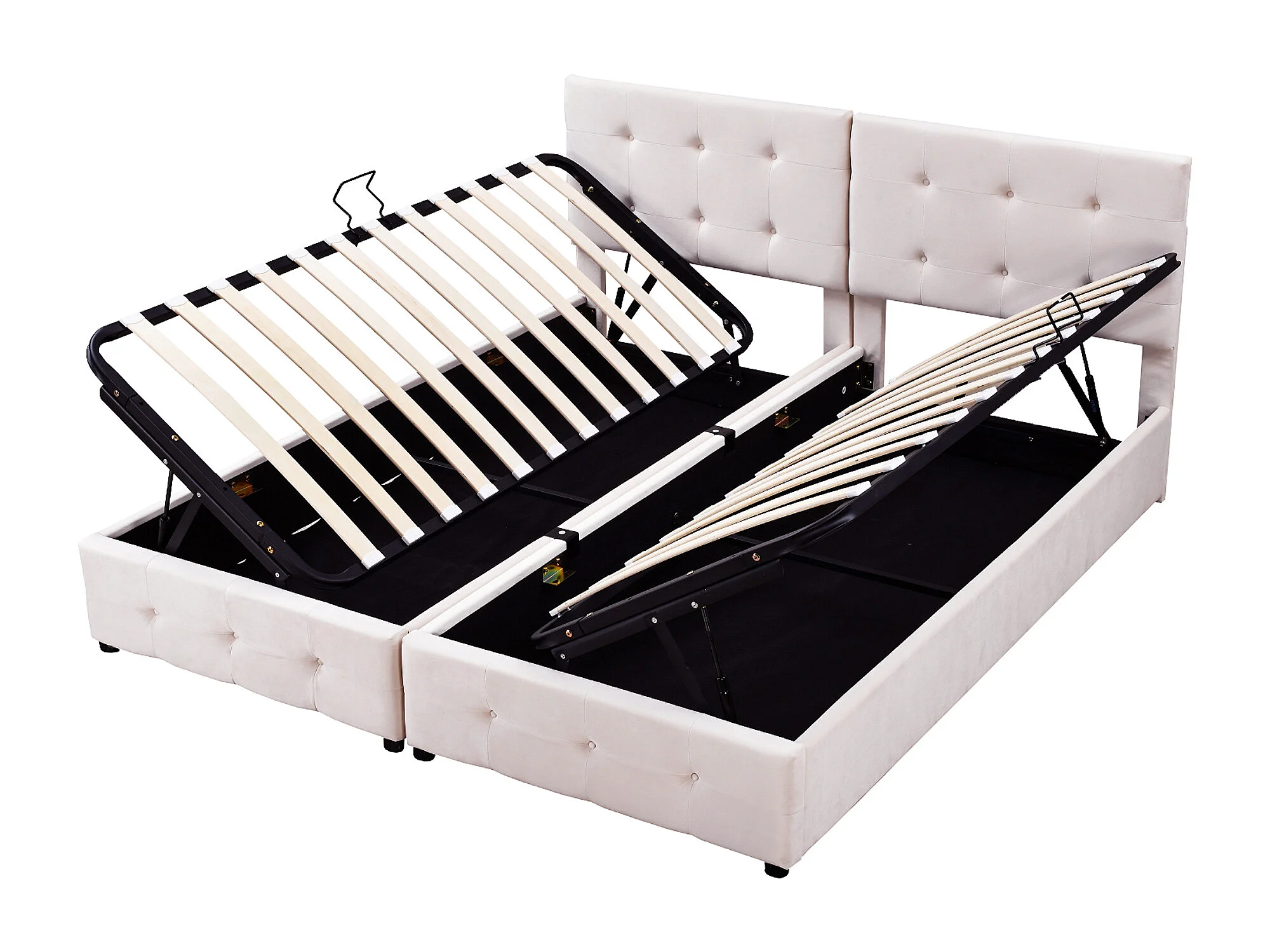 Letto matrimoniale con contenitore 180x200cm, trasformabile in letto per bambini (2 x 90x200cm) - Velluto beige