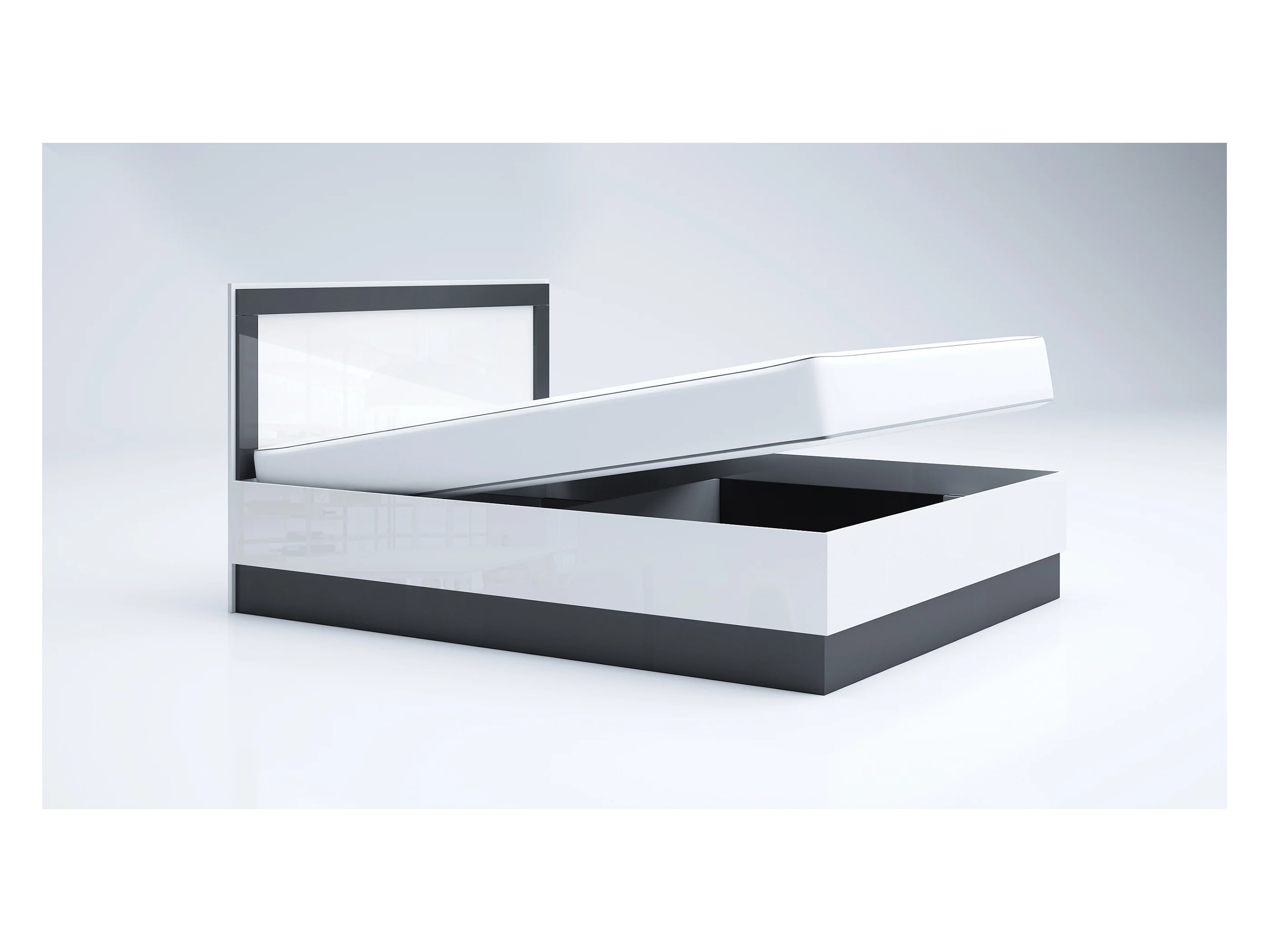 Letto matrimoniale con contenitore bianco lucido e antracite LG57