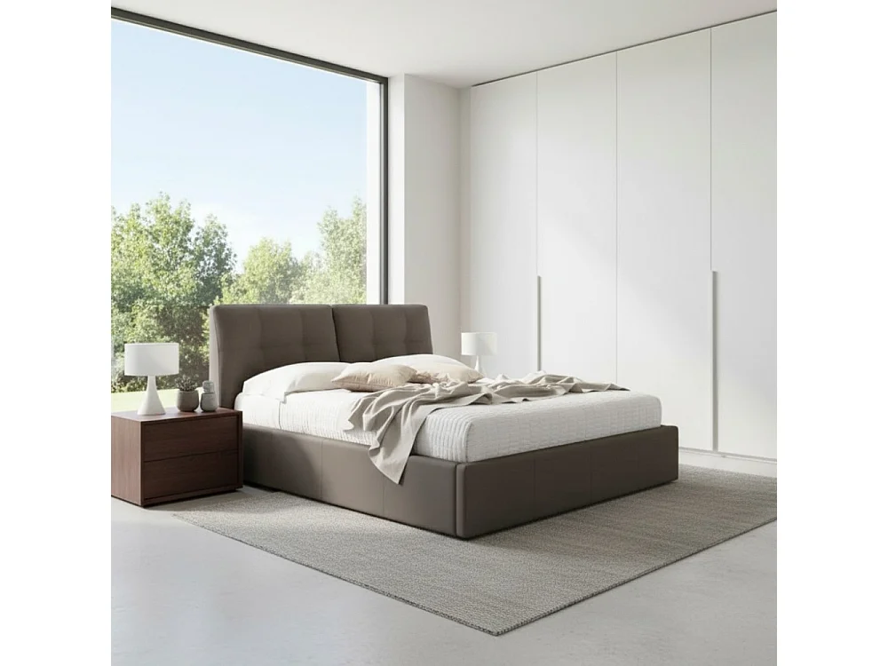 Letto matrimoniale con contenitore Melia ecopelle tortora