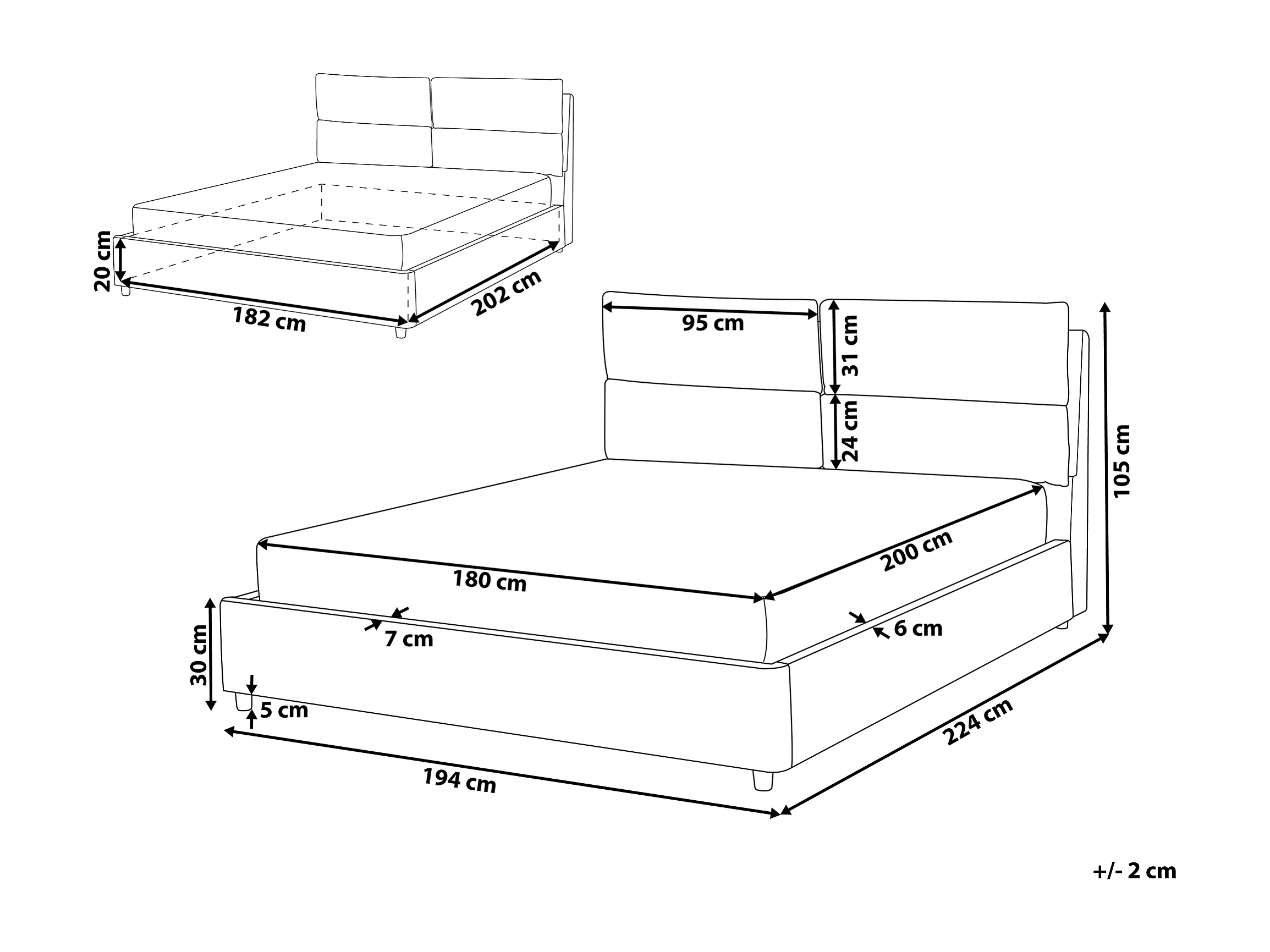 Letto con ottomano Velluto BATILLY 180 x 200 cm Grigio