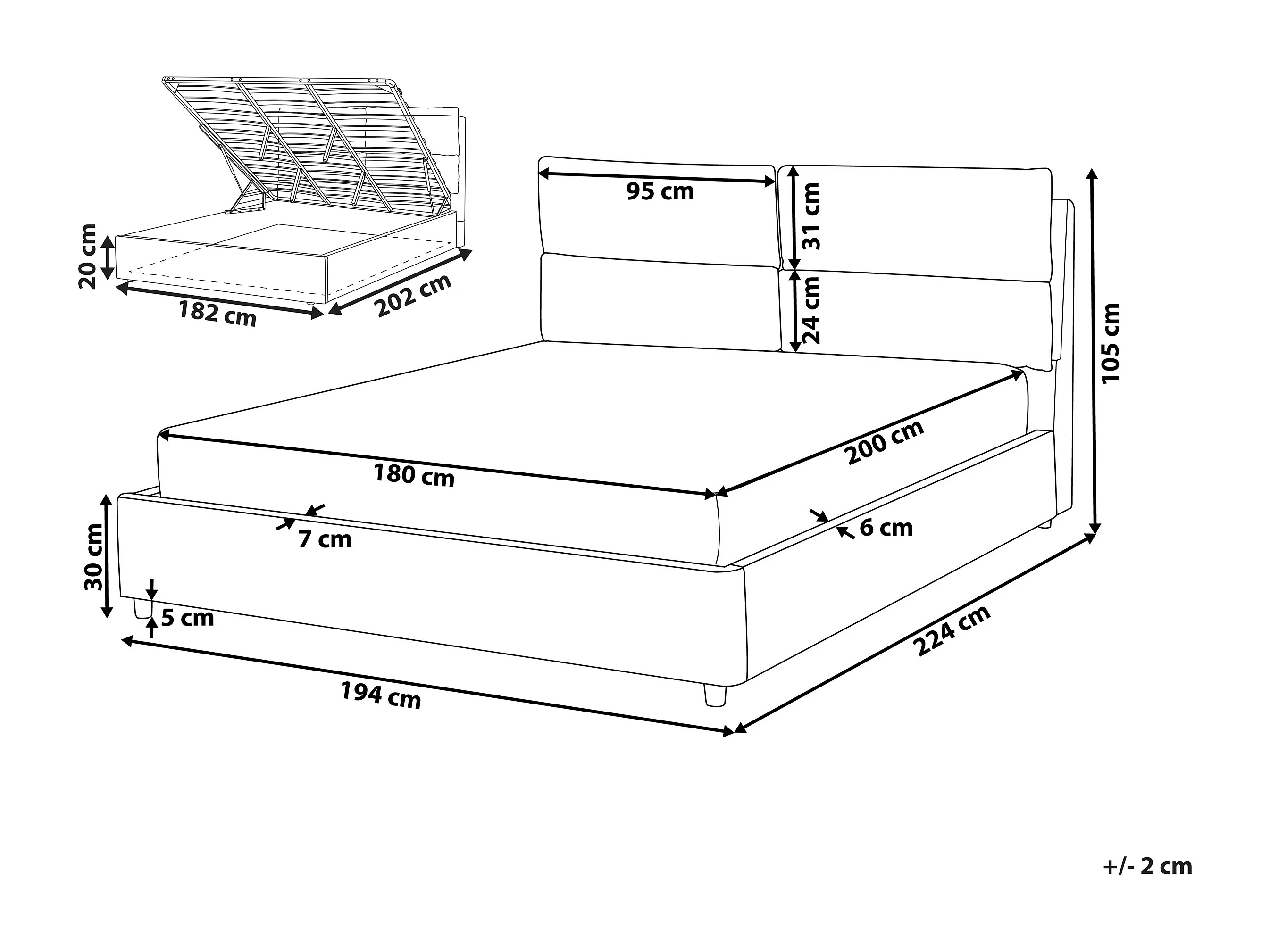 Letto con ottomano Velluto BATILLY 180 x 200 cm Grigio chiaro