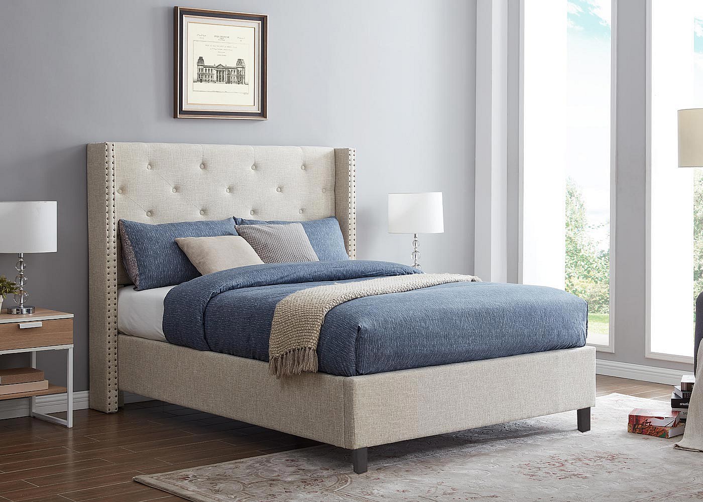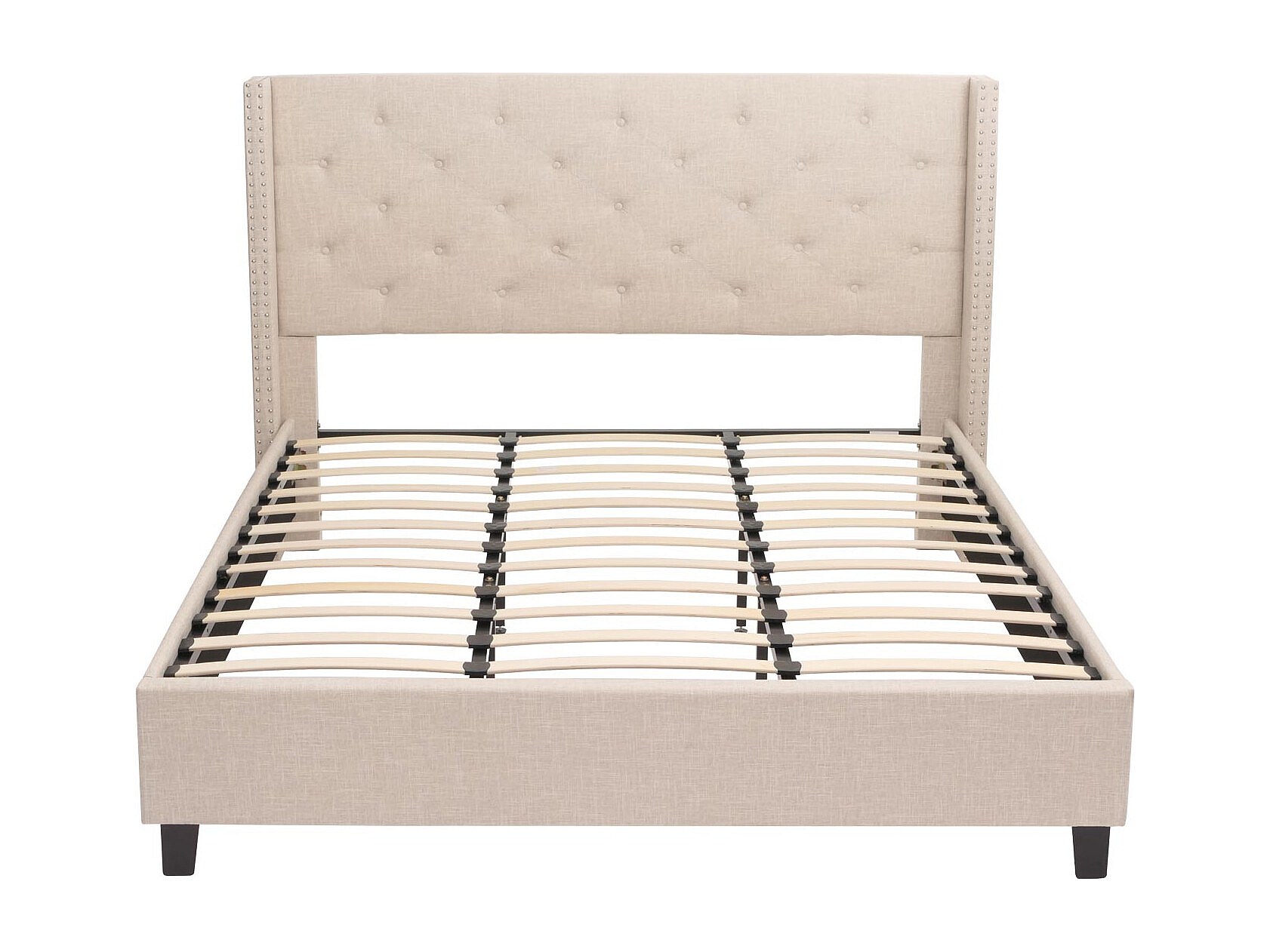 Letto telaio giroletto matrimoniale imbottito con doghe MCW-J98 legno massello 160x200cm avorio beige